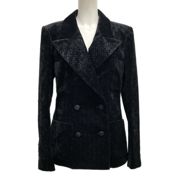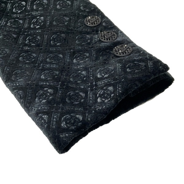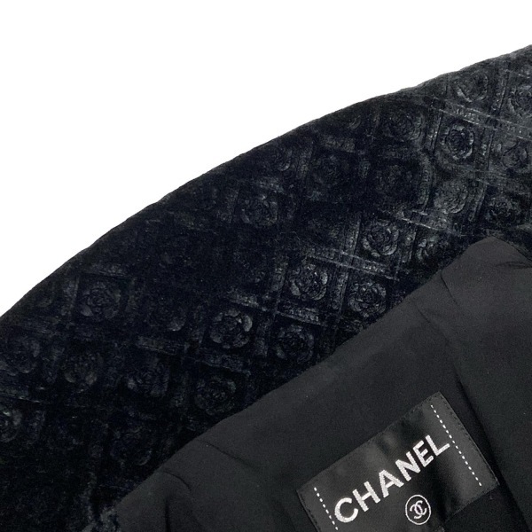 Product name: シャネル CHANEL サイズ36 S P71147 - 黒 レディース 長袖/ダブル/4ポケット/カメリア総柄/ベロア/ラインストーン/冬/2021年 21A