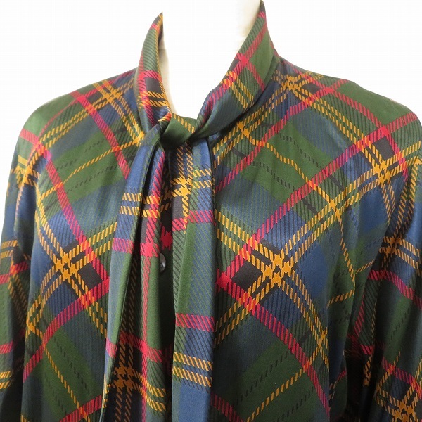 Product name: #anc イヴサンローラン Yves Saint Laurent シャツ ブラウス 36 緑 紺 赤 シルク チェック ボウタイ ヴィンテージ レディース [932877]