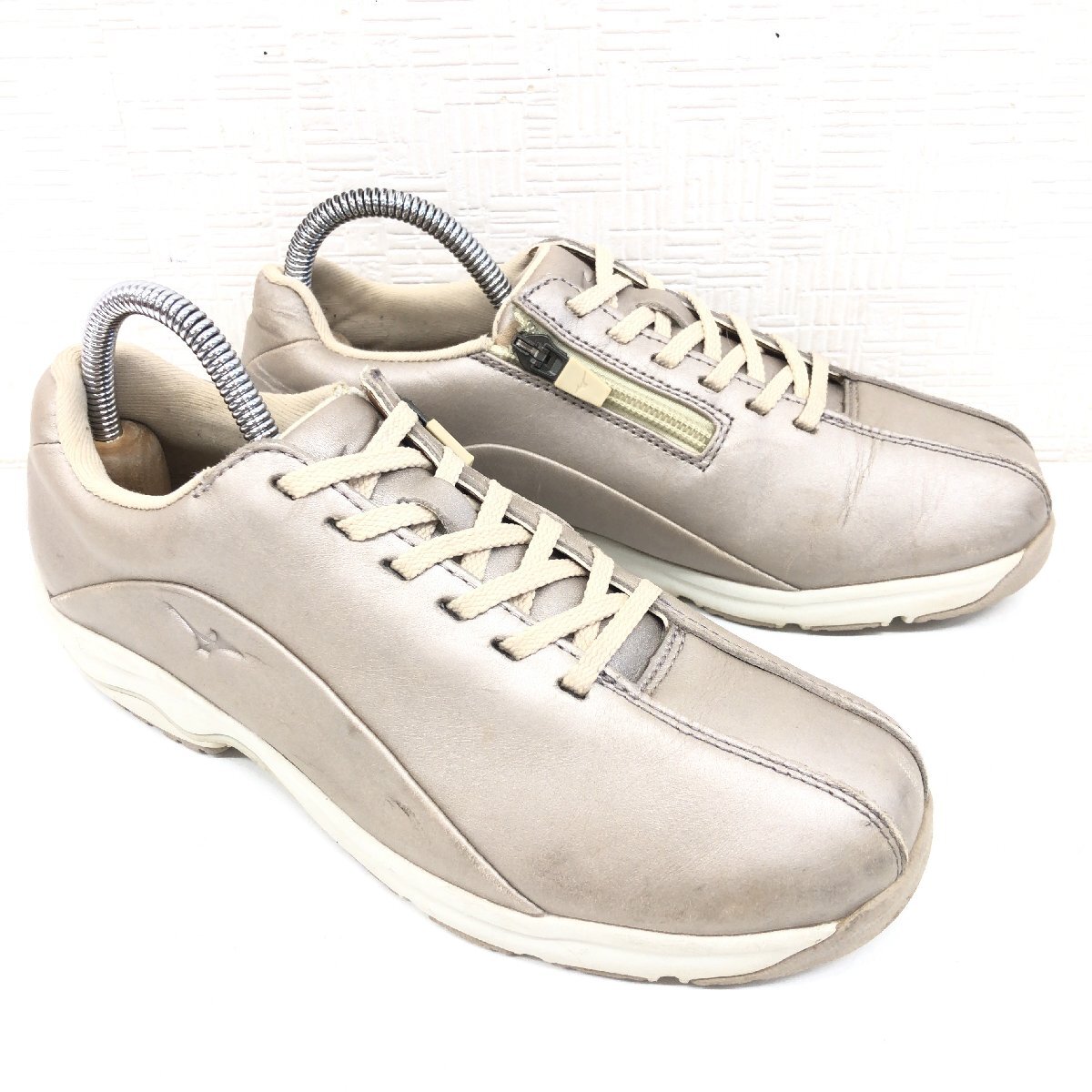 ●Mizuno ミズノ LD40V サイドジップ 本革 レザー コンフォート ウォーキングシューズ 22cm シャンパンゴールド スニーカー 健康靴 女性用