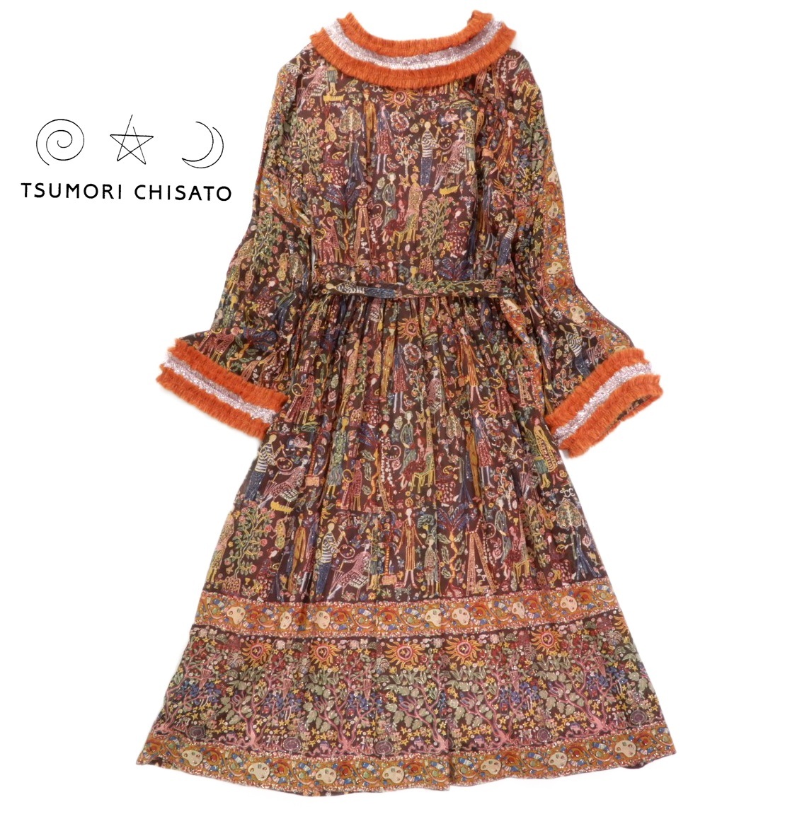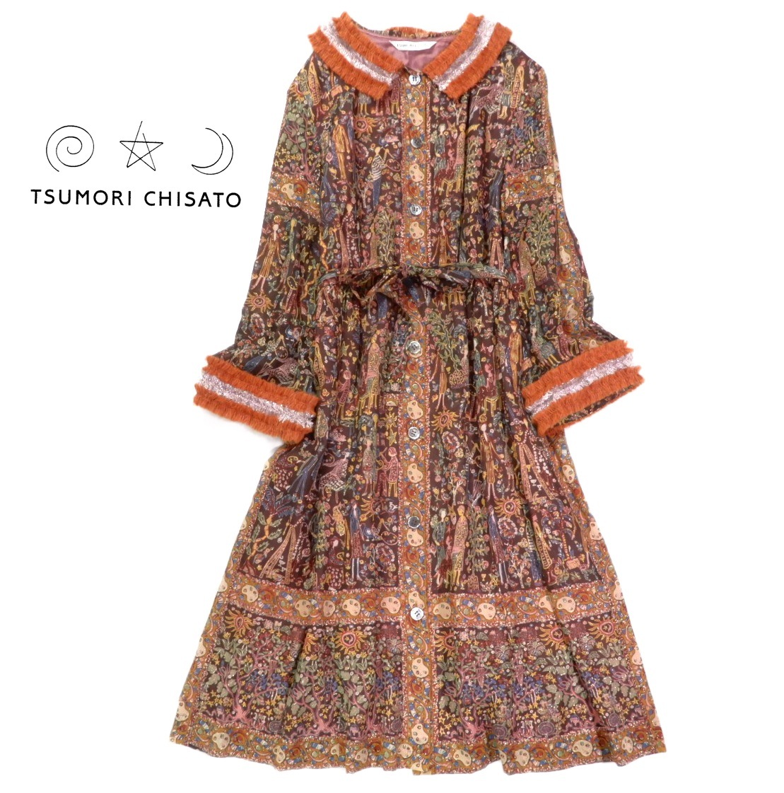 未使用 ツモリチサト TSUMORI CHISATO 大人可愛い☆ 華やか シルク 総柄 ラメ混 デザイン ワンピース アーティストたちシフォン 2