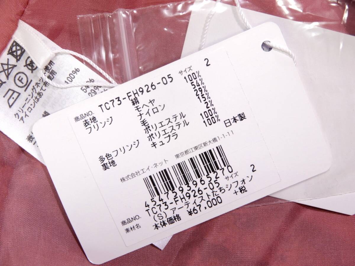 素材は 表地 絹100% フリンジ モヘヤ54 ナイロン29 毛15 ポリエステル2% 多色フリンジ ポリエステル100% 裏地 キュプラ100% です。