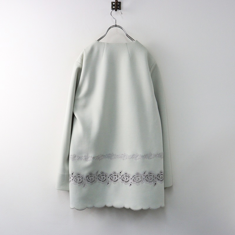 美品 ユキコハナイ Yukiko Hanai 刺繍レースボンディングノーカラーコート 10/ミントグリーン ジャケット スカラップ【2400014357493】