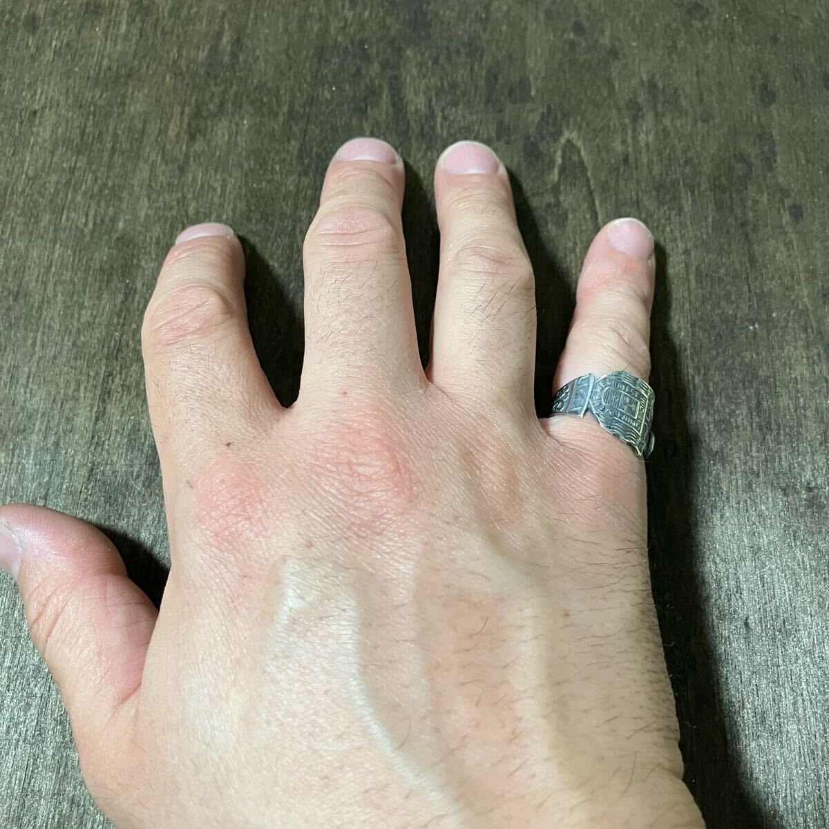 ショットコンチョをロウ付けし指輪にリメイクしました。