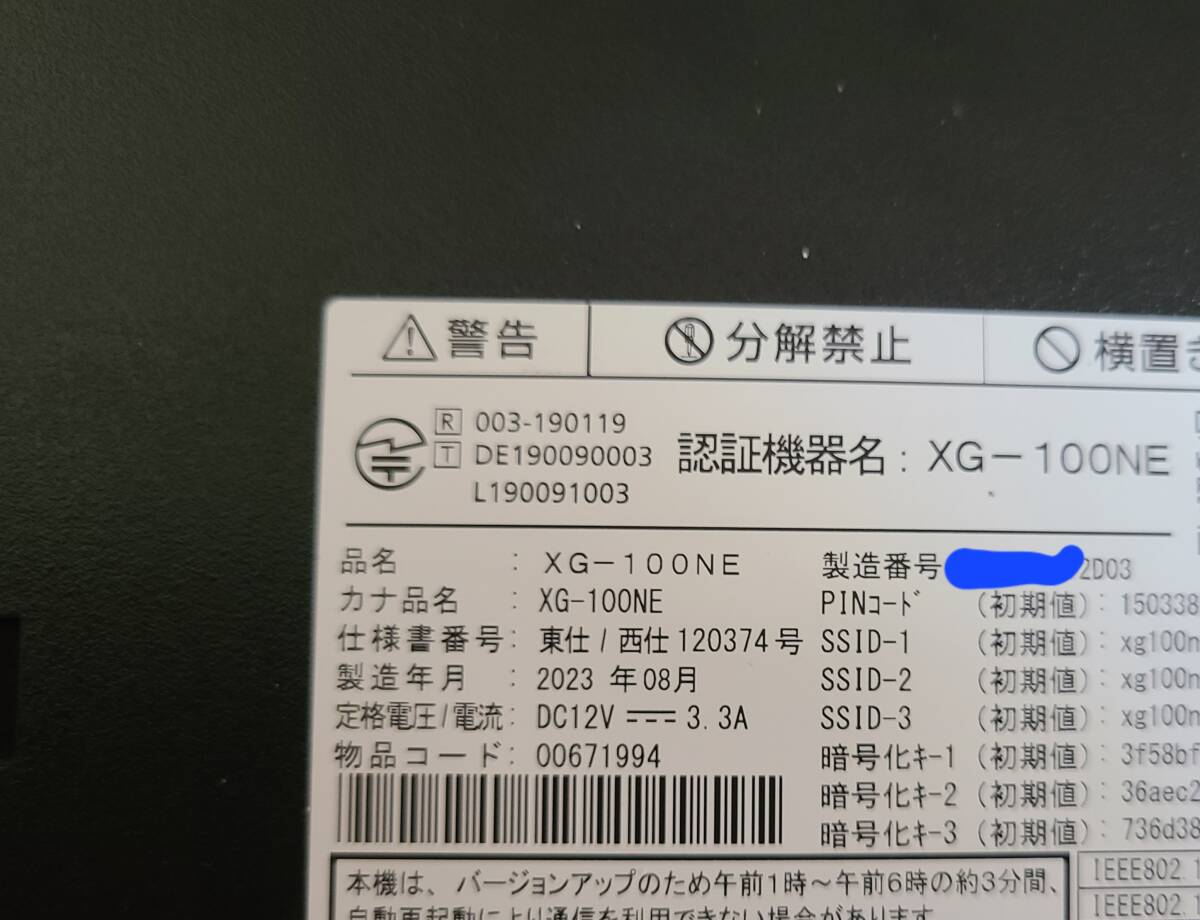 Product name: NTT XG-100NE フレッツ光クロス  ホームゲートウェイ