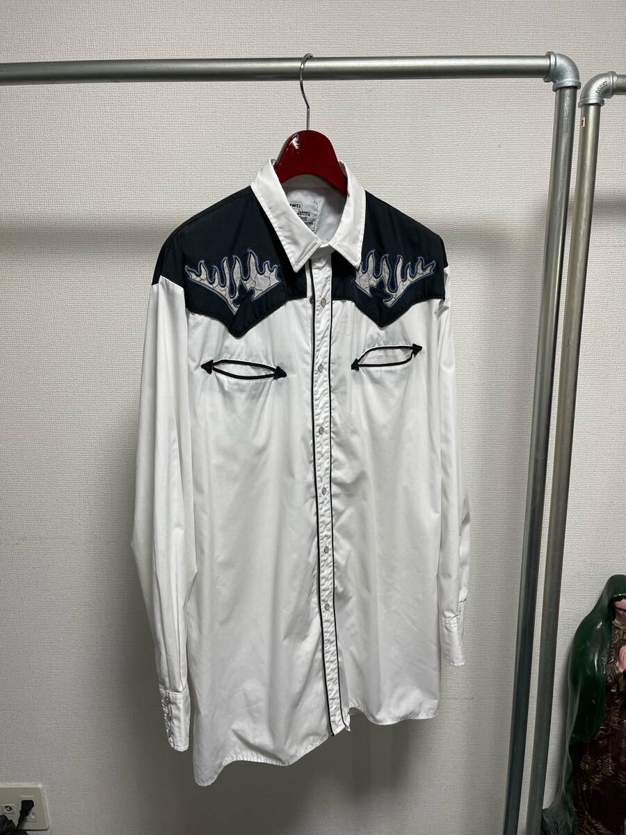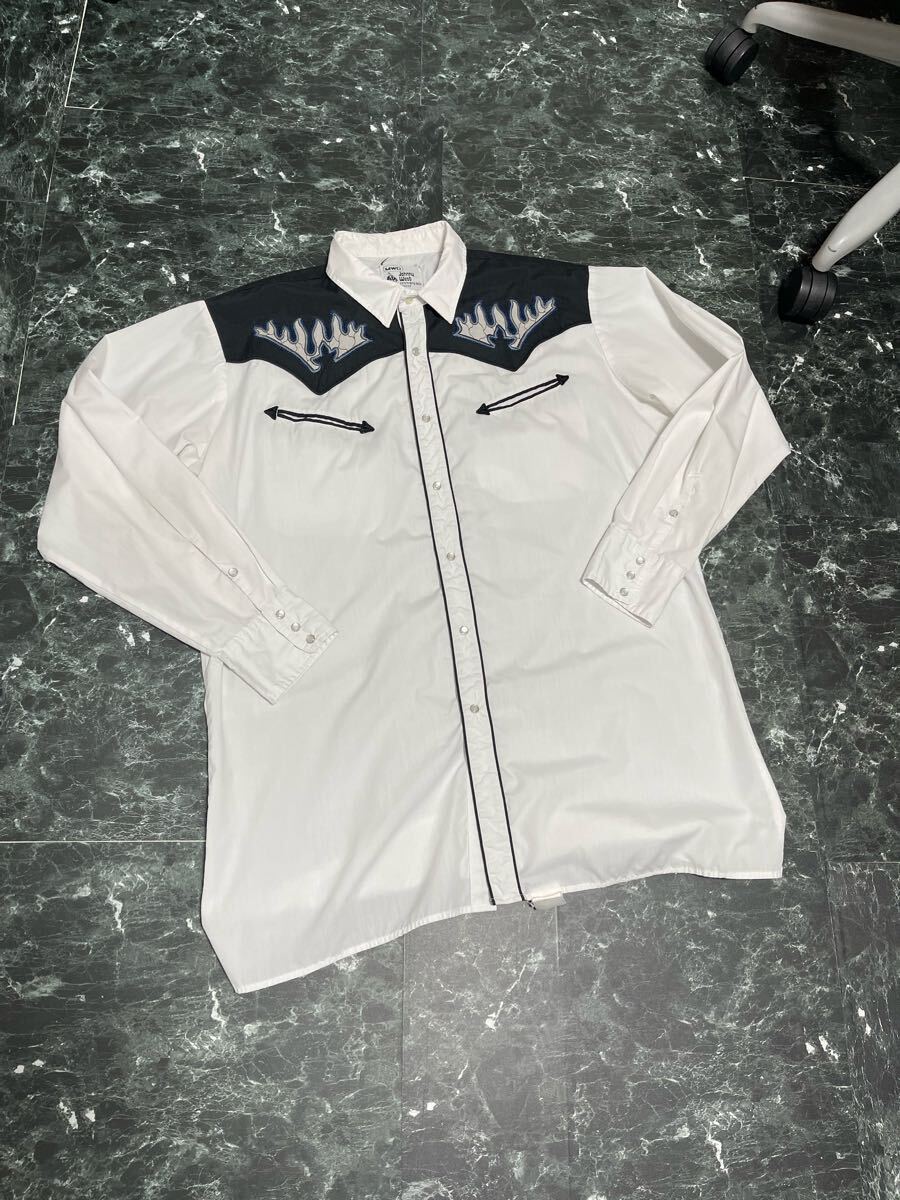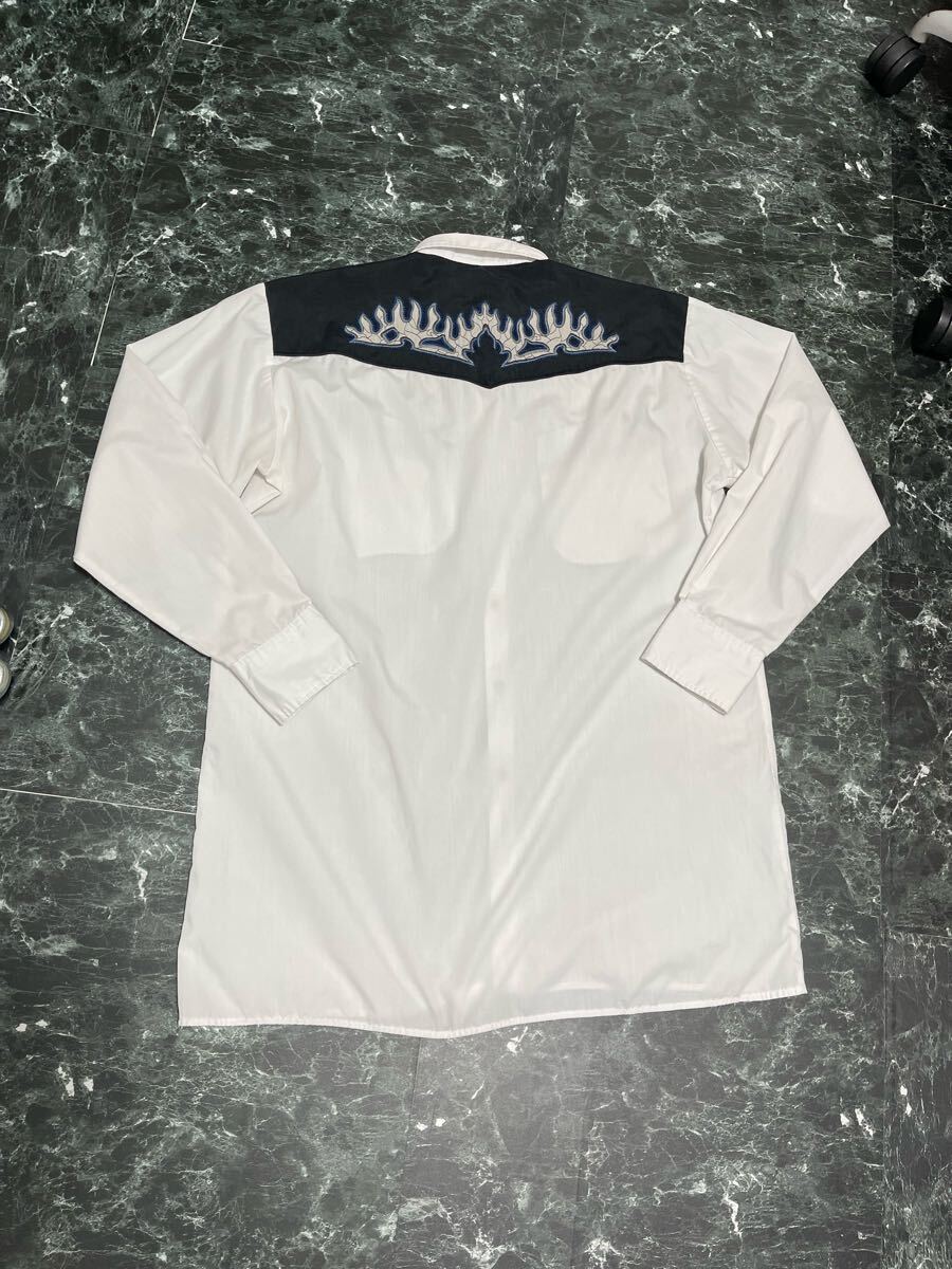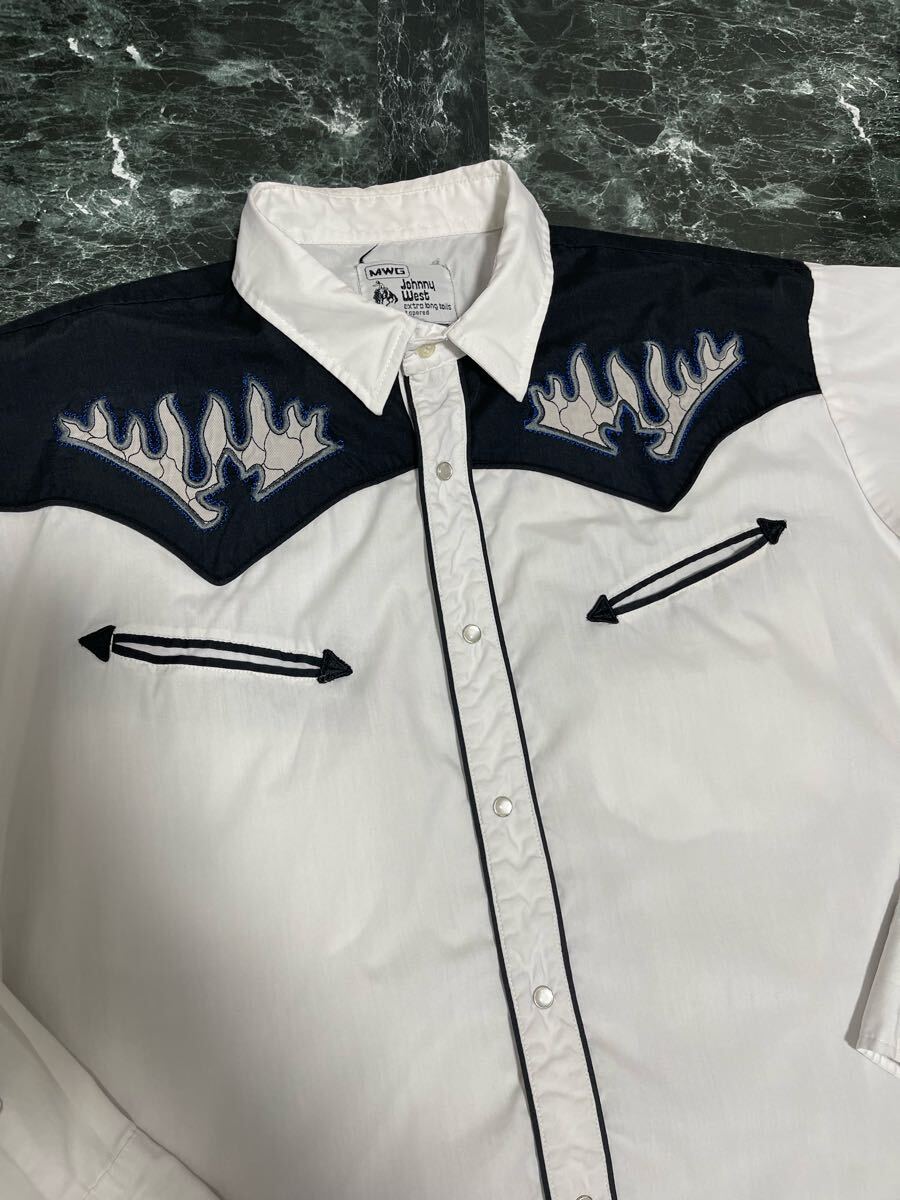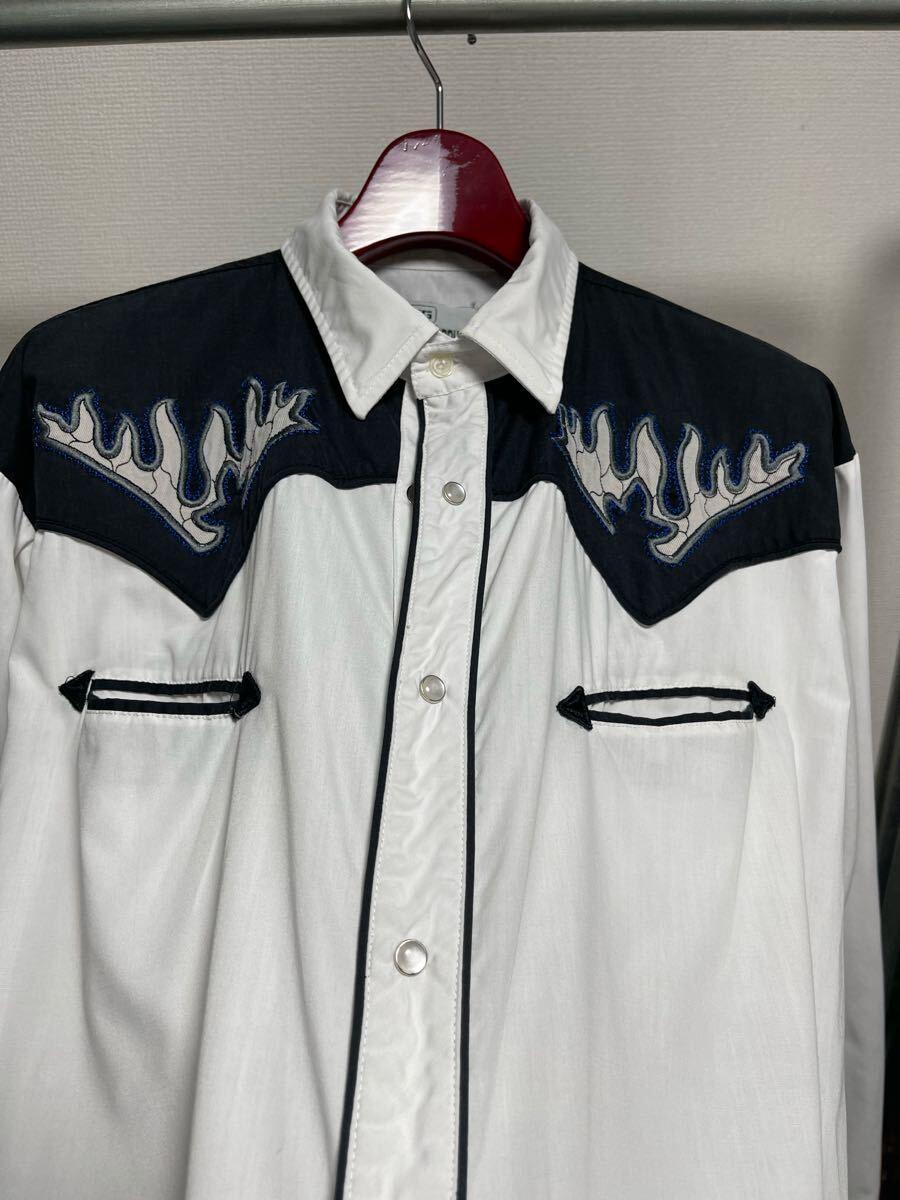MWG Western shirt ウエスタンシャツ 刺繍 フレイム L 古着