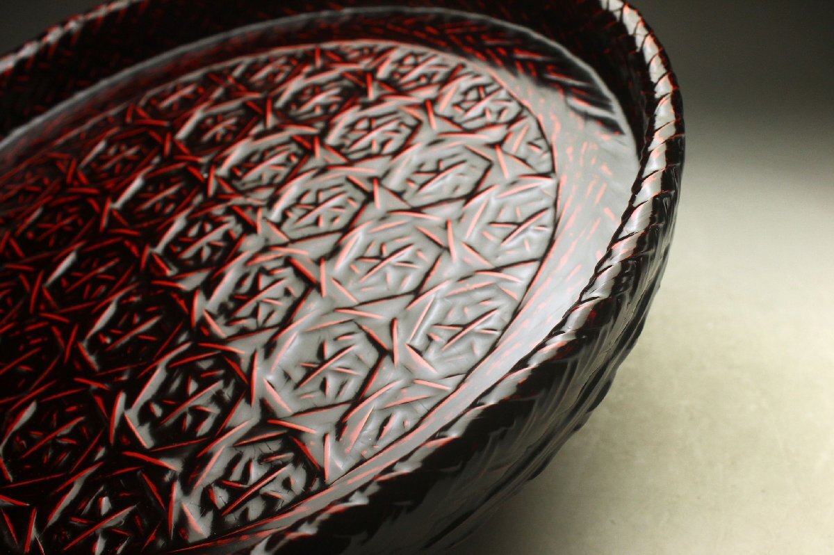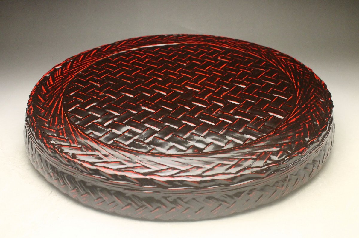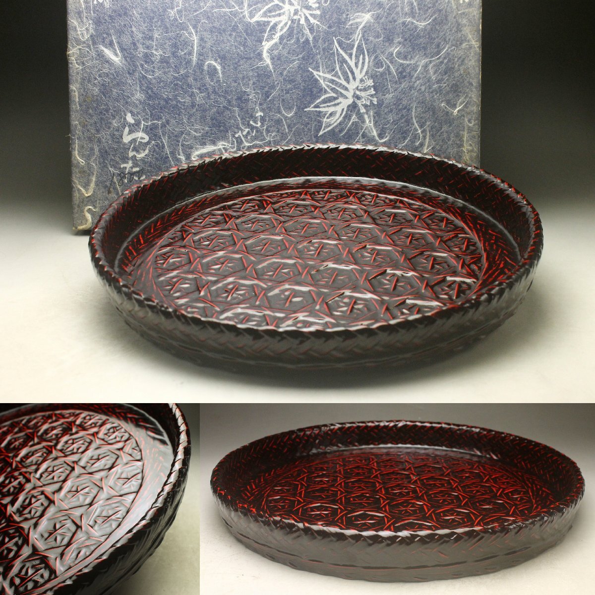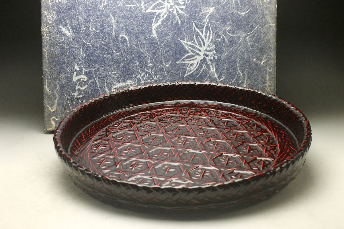 Product name: 【余韻】 茶道具 天然竹製 籃胎 丸盆★径:30cm 無傷美品<同梱可>