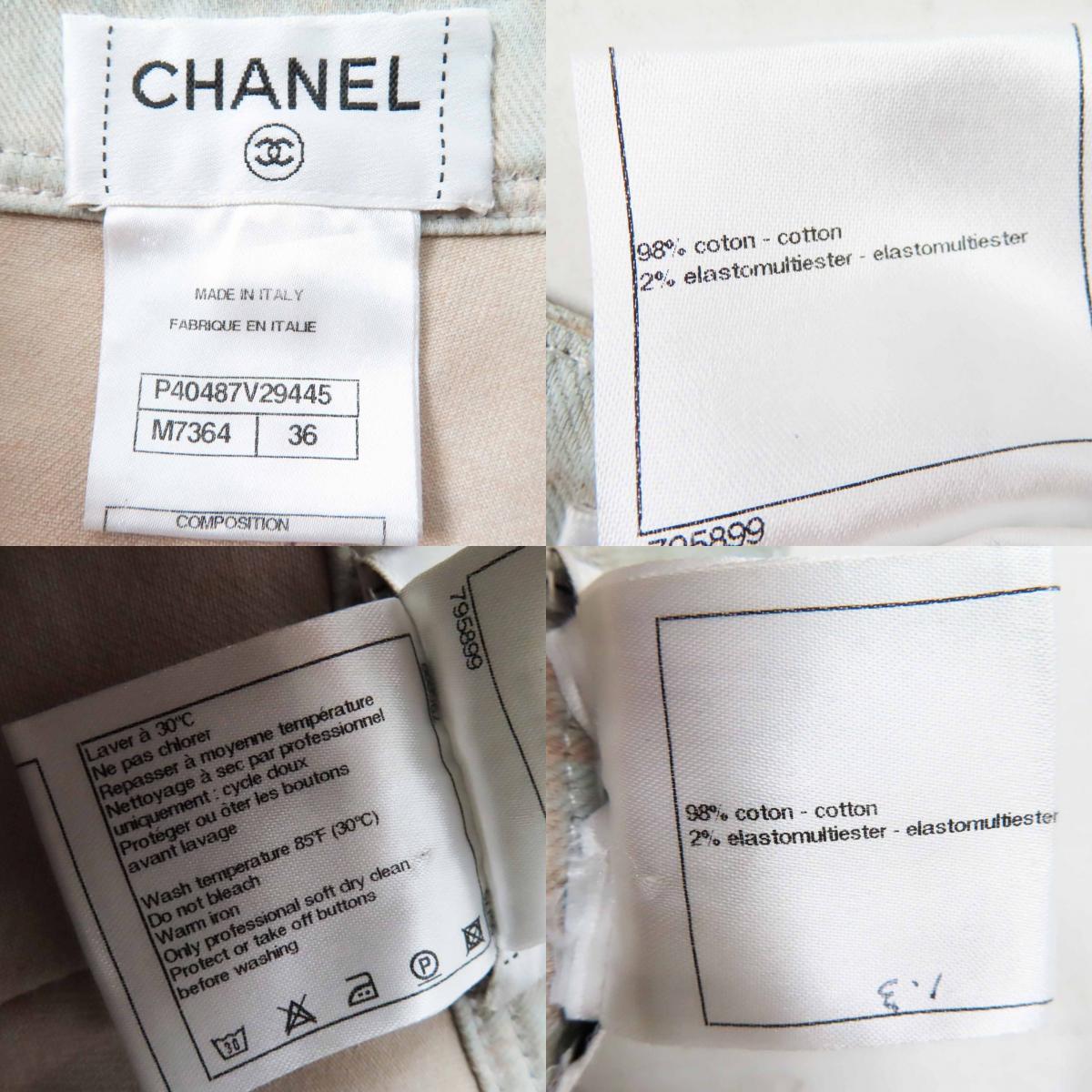 Product name: 美品◎CHANEL シャネル P40487 ココマークボタン ステッチデザイン ロゴパーツ デニムパンツ ライトブルー マルチ 36 伊製 レディース