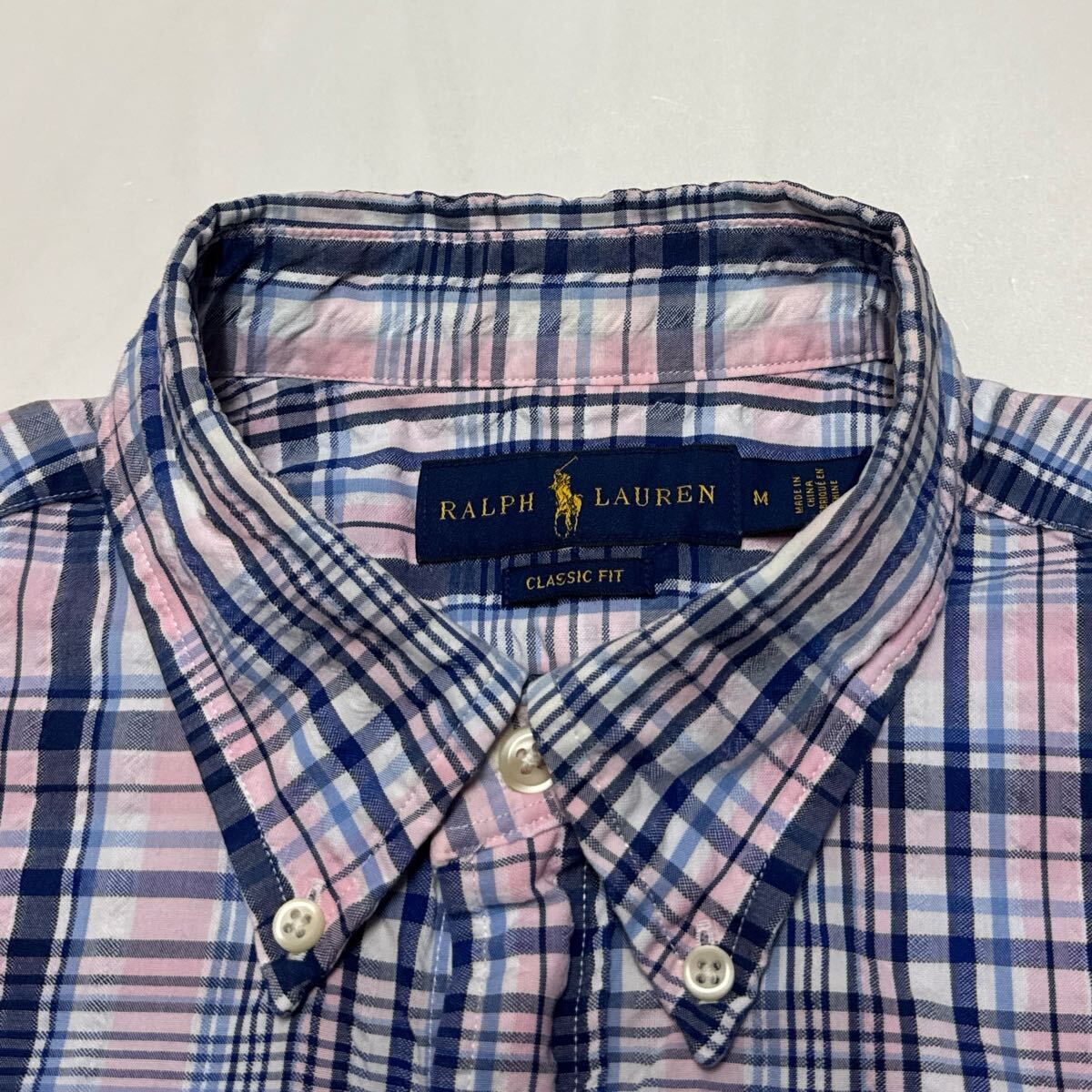 Ralph Lauren ラルフローレン 半袖ボタンダウンシャツ 刺繍 チェック シアサッカー M