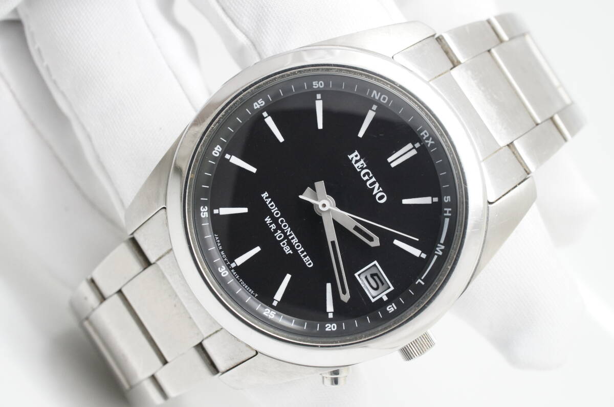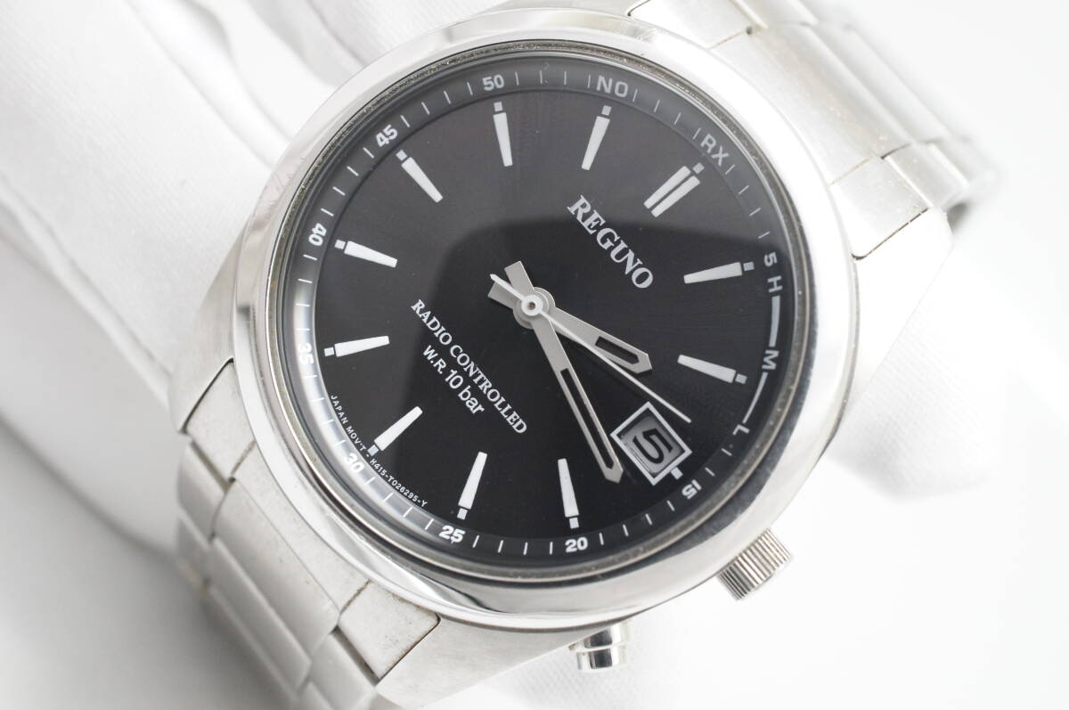 W35●作動良好 CITIZEN シチズン REGUNO レグノ 電波ソーラー H415-T017274 黒文字盤 デイト メンズ腕時計 シルバー お洒落 クォーツ