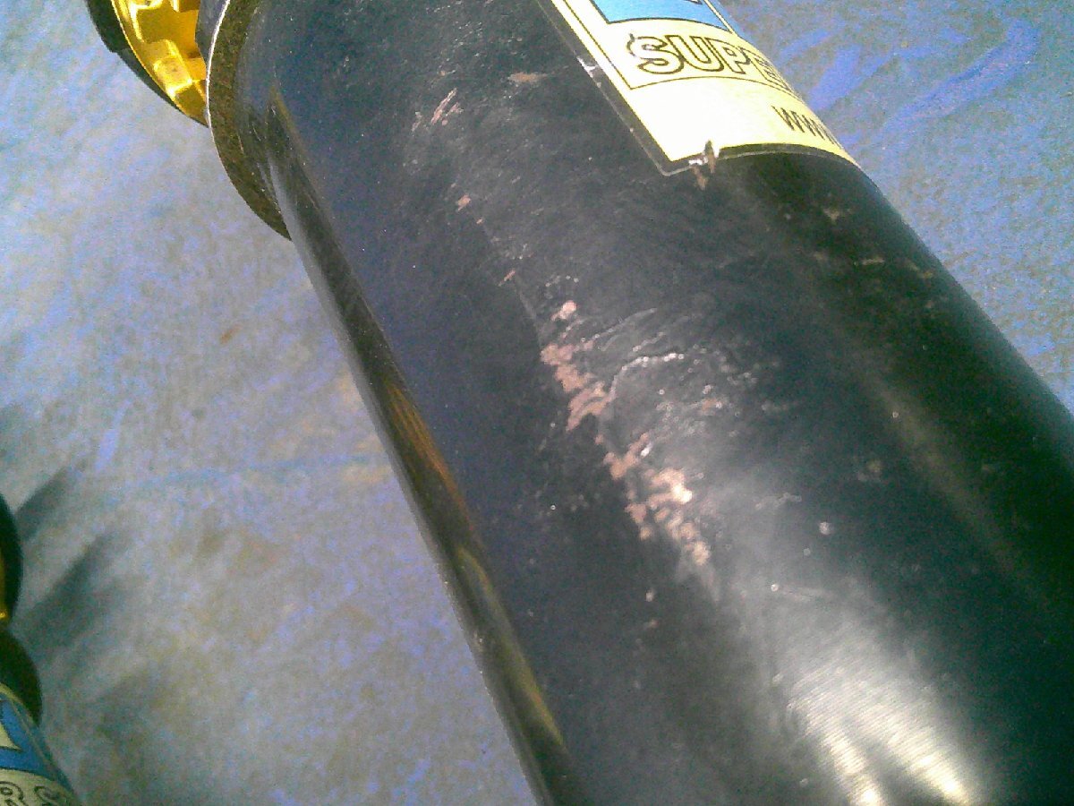 左右ともアッパーマウントのブッシュに劣化割れ、ダストカバーに切れが有ります。