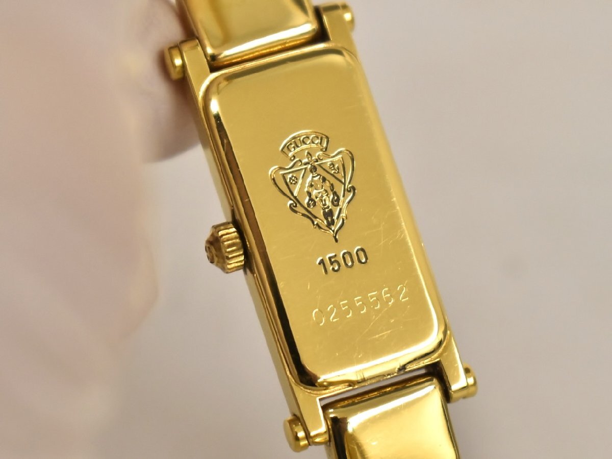 グッチ GUCCI 腕時計 1500 レディース クォーツ SS ゴールドカラー 文字盤ブラック スクエアケース バングルベルト 2506LR135