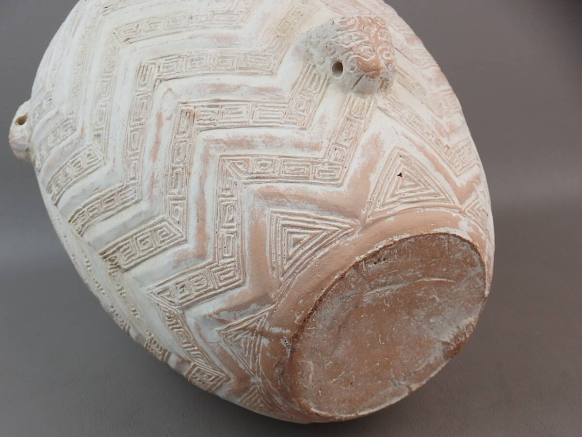【骨董・茶道具】★中国?南米?東南アジア?ギリシア?ローマ?ペルシア?★★線文獣面土器 gl070ub.4 花器 花道 華道 発掘品 出土品
