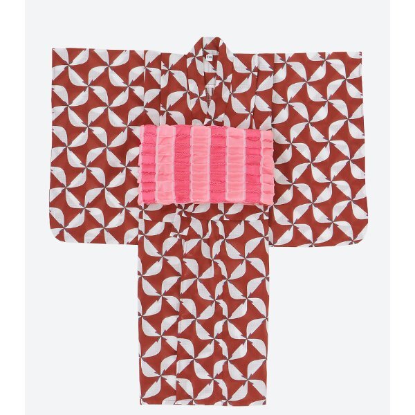 Product name: 古今 コキン◇子ども浴衣 風ぐるま◇丈詰めお直し品 サイズ エンジ クリーニング済み 美品 ※帯なし