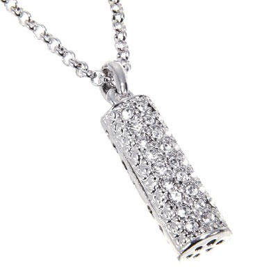 スティックフォルムに豪華なダイヤモンドCZと、ハートの透かし模様がキュートな2WAYネックレス。