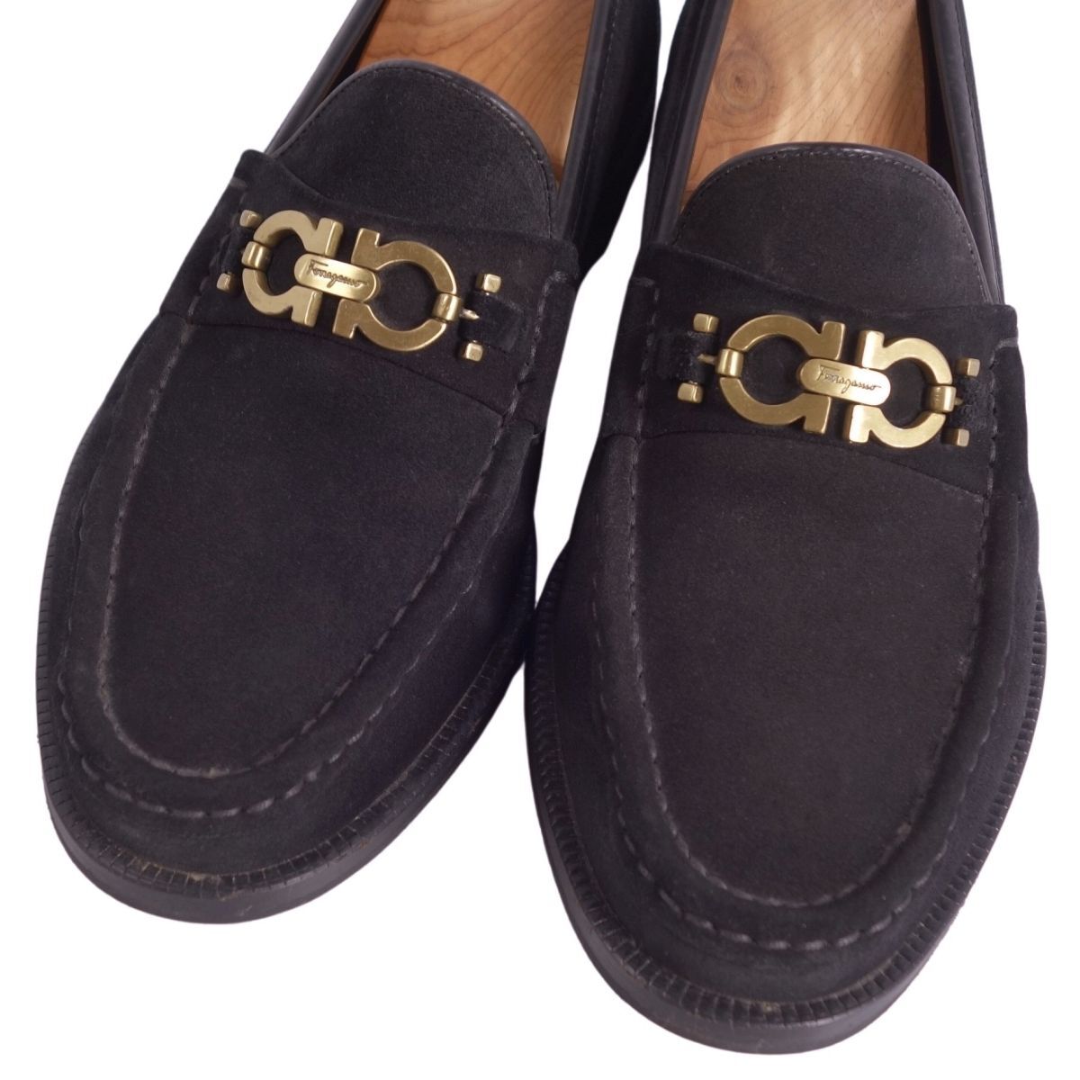 サルヴァトーレ フェラガモ Salvatore Ferragamo ローファー モカシン ガンチーニ スウェード メンズ 7.5EE(25.5cm) 黒