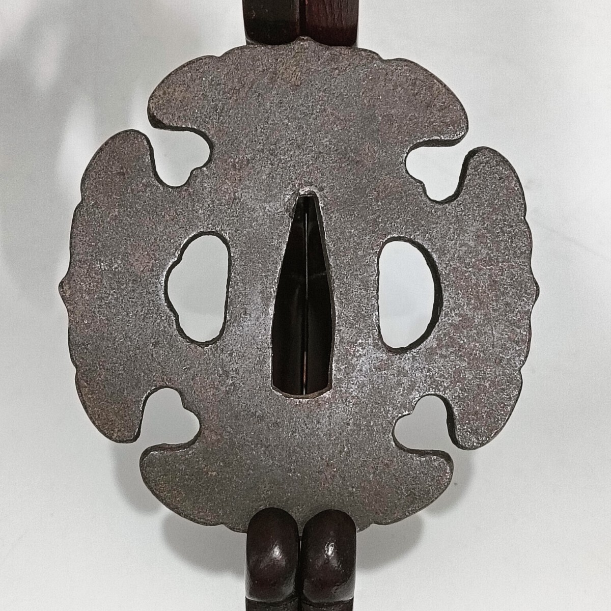 【A3682】鉄地 四方猪目彫刻 刀鍔 金工細密彫刻 刀装具 日本刀装具 刀剣美術 骨董品 アンティーク