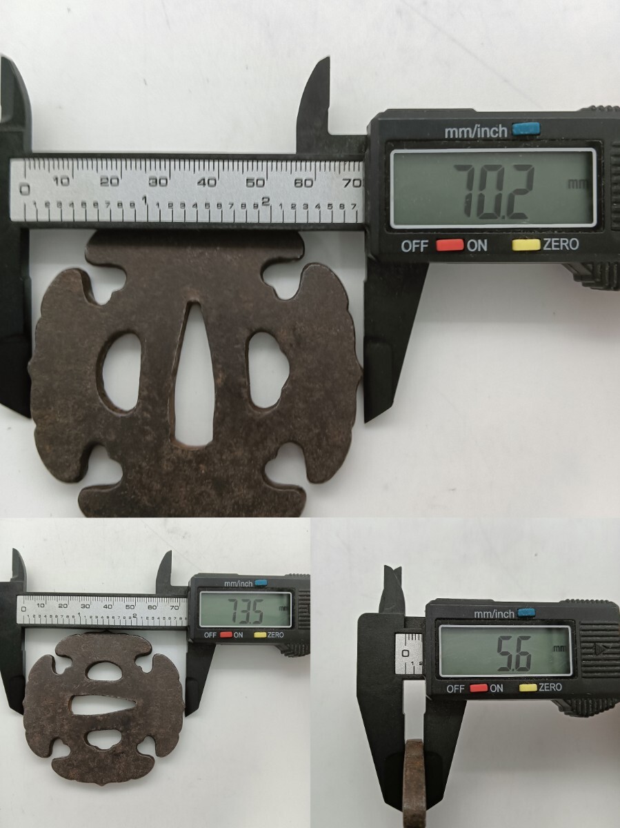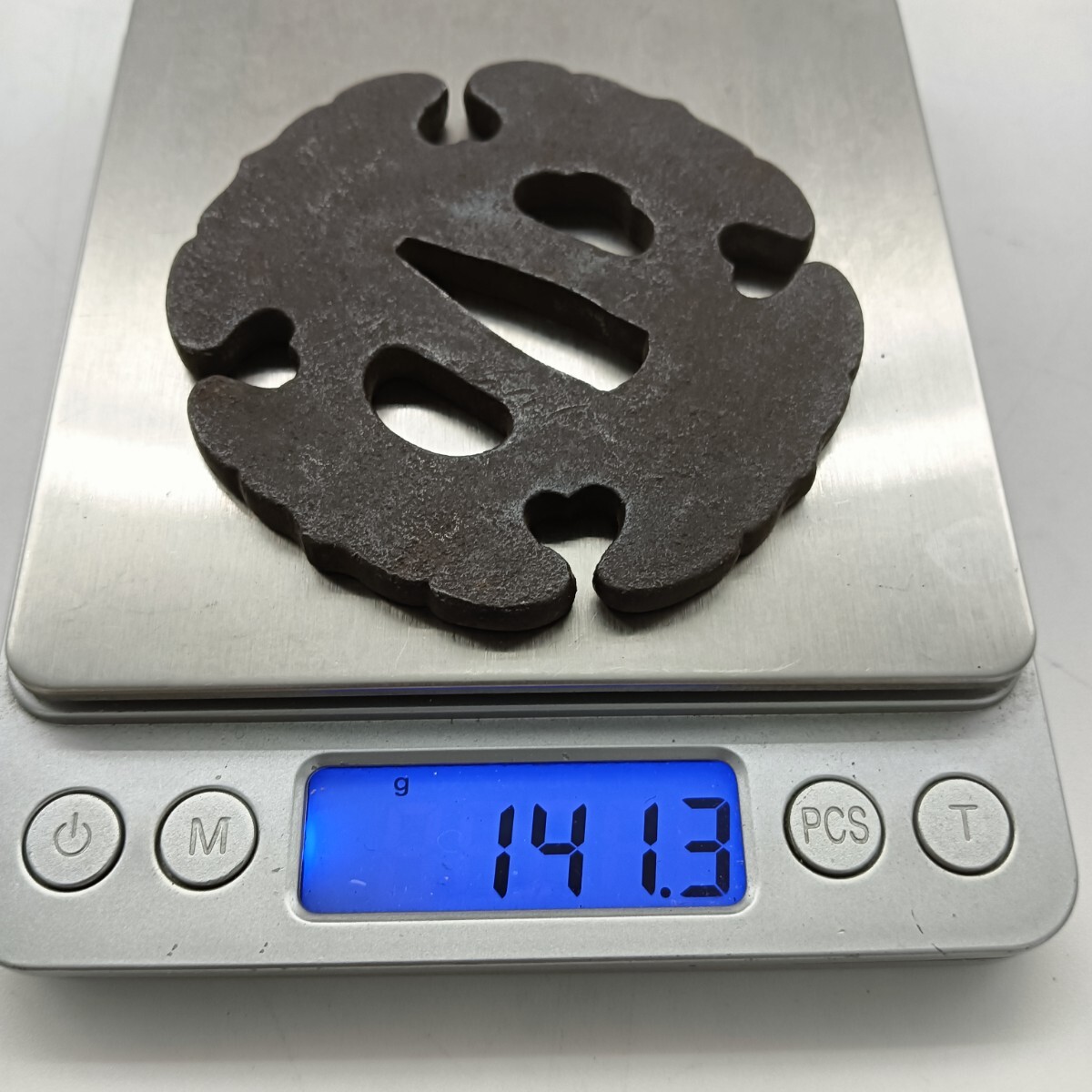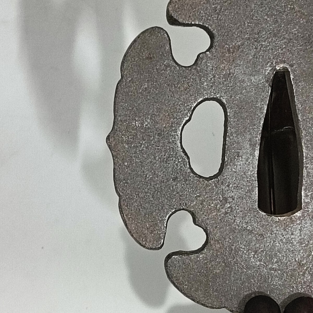 Product name: 【A3682】鉄地 四方猪目彫刻 刀鍔 金工細密彫刻 刀装具 日本刀装具 刀剣美術 骨董品 アンティーク