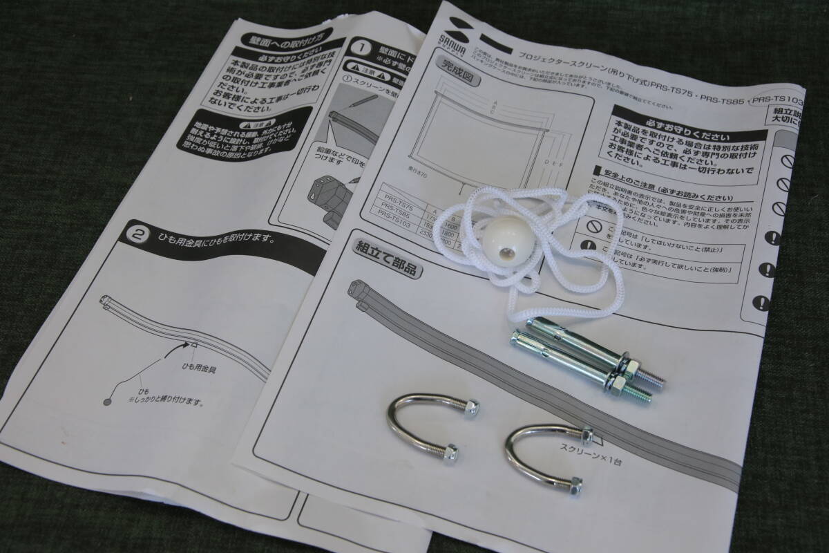 あ//Q0460【未使用・保管品】SANWA サンワサプライ 吊り下げ式(103型相当) プロジェクタースクリーン PRS-TS103