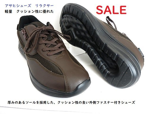 Product name: アウトレット特価メンズ●アサヒ リラクサー011ブラウン27.0cm/抜群クッション軽い 脱ぎ履き簡単なファスナー軽量シューズ 期間限定特価!