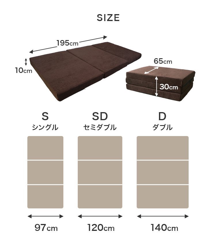 Product name: 高反発マットレス ダブル 三つ折り 厚さ10cm 高反発ウレタン 洗えるカバー 体圧分散 ベッド 寝具 敷布団 マットレス ブラウン 新品 未使用