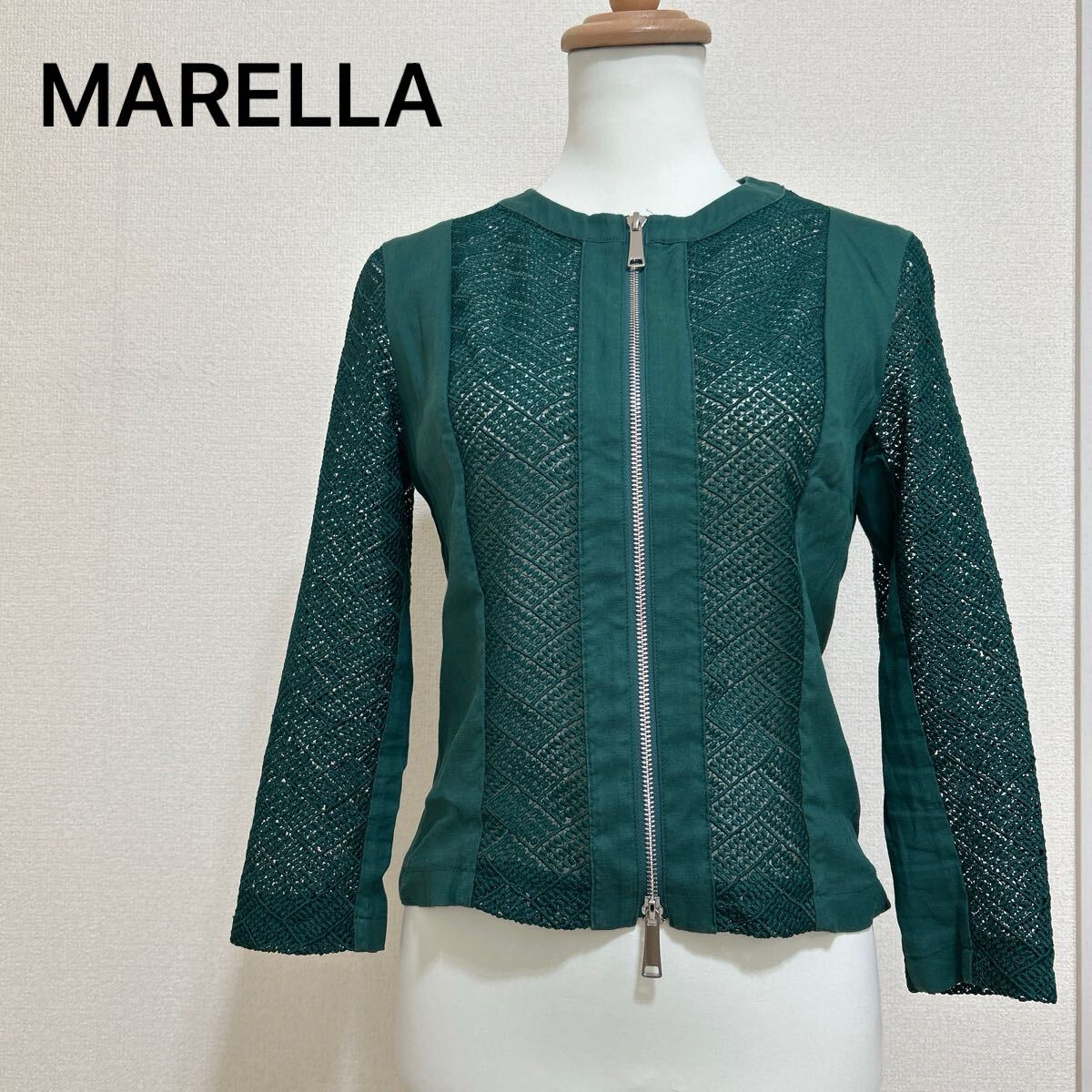 Product name: 美品 高級感 MARELLA マレーラ レディース ジャケット 総レース ジップアップ エレガント グリーン 緑 Mサイズ M