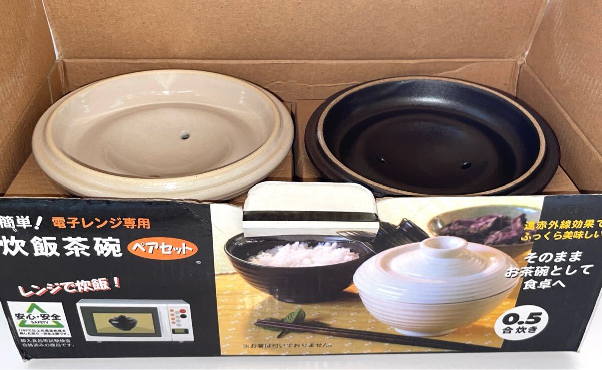◆簡単電子レンジ専用 炊飯茶碗 ◆ペアセット♪ レンジで炊飯遠赤外線効果 ふっくら美味しい♪そのままお茶碗で食卓へ 0.5合炊き 未使用