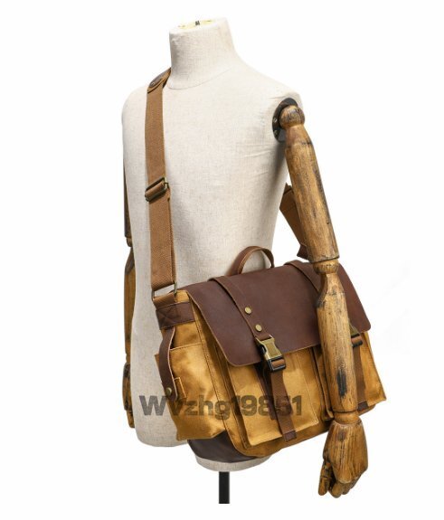 男性用斜めショルダーバッグトップ牛革レトロ郵便配達バッグ帆布バッグ男性リュックシングルショルダーバッグ