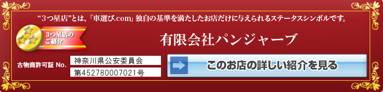 “3つ星店”とは「車選びドットコム」独自の基準を満たした販売店だけに与えられるステータスシンボルです。