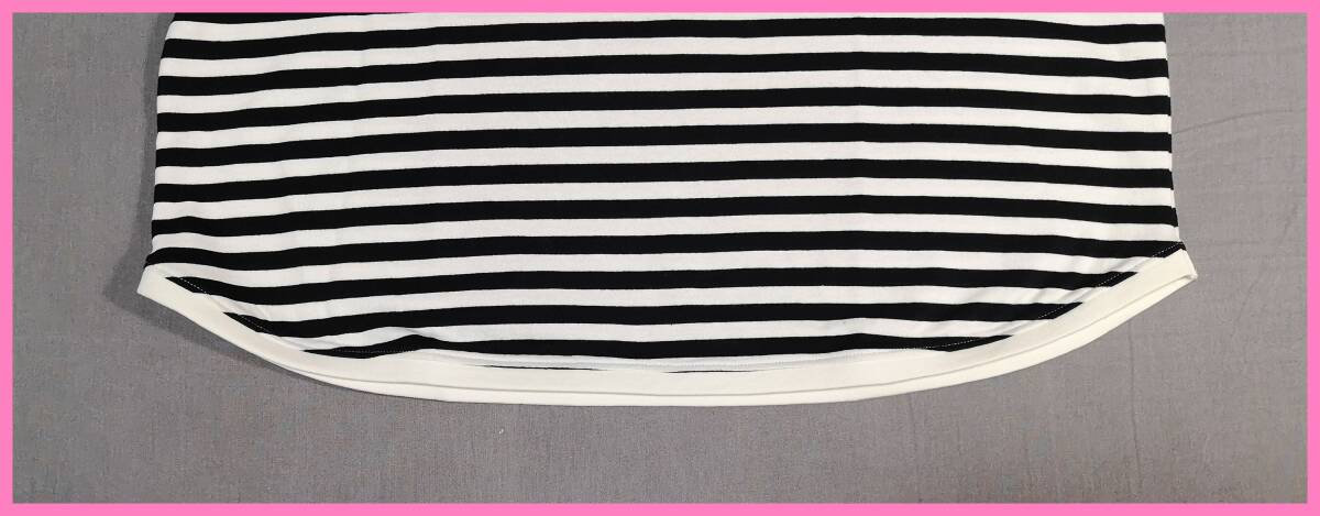 Product name: BLS‐453‐2☆夏☆新品☆送料込み☆即決☆ナチュラル系☆少し厚手のTシャツ素材☆M~Lサイズ☆Tシャツ☆白×黒☆ボーダー柄