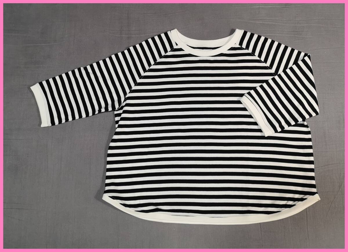 BLS‐453‐2☆夏☆新品☆送料込み☆即決☆ナチュラル系☆少し厚手のTシャツ素材☆M~Lサイズ☆Tシャツ☆白×黒☆ボーダー柄