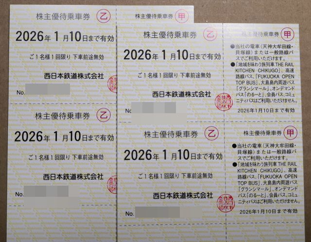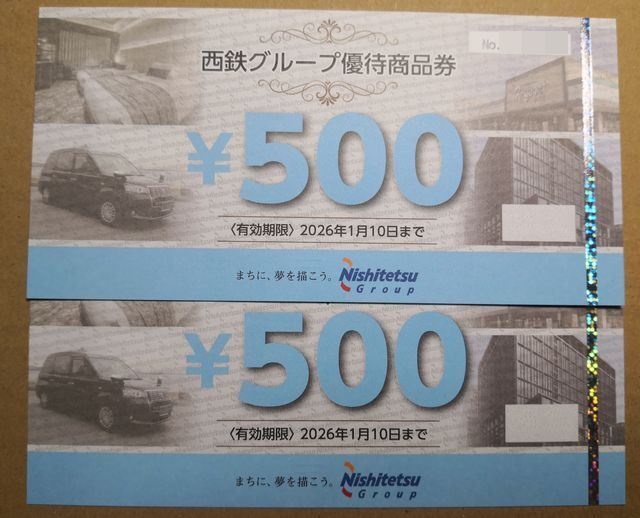 Product name: 西日本鉄道 西鉄 株主優待 西鉄グループ優待商品券500円券2枚、株主優待乗車券4枚、優待ガイド2冊