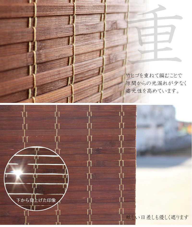 ●竹を重ねて編むことで、一般的な竹簾と比べ、遮光性を高めています。