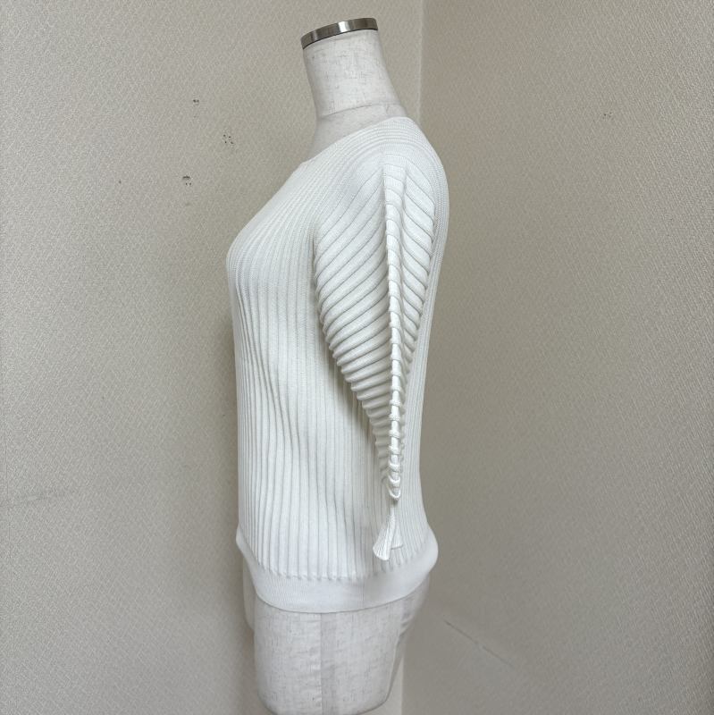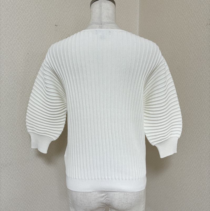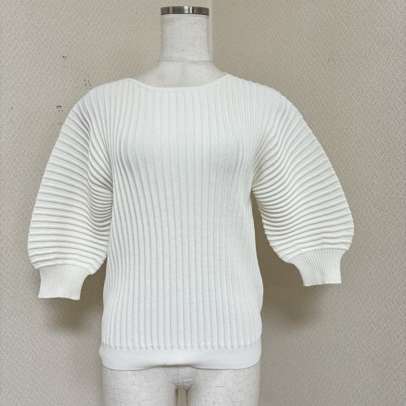 Product name: INDIVI インディヴィ レディース セーター 洗えるニット 接触冷感 ボリュームスリーブ サマーニット 5分袖 ホワイト 白 5号 XS