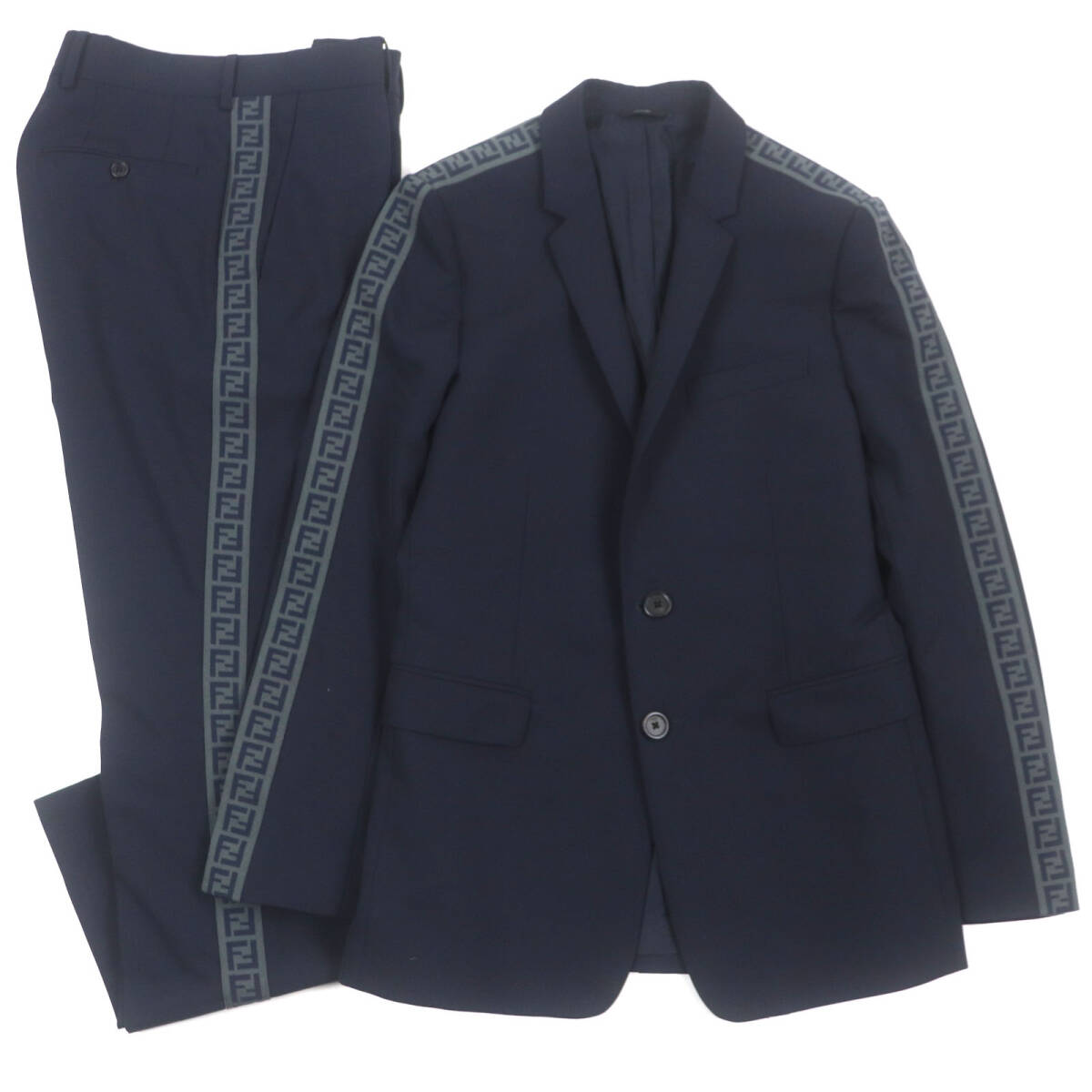 Product name: 美品▼FENDI フェンディ FJ0567 FB0366 FFロゴ ズッカ柄 シングルスーツ セットアップ ネイビー ジャケット/46 パンツ/44 正規品 メンズ
