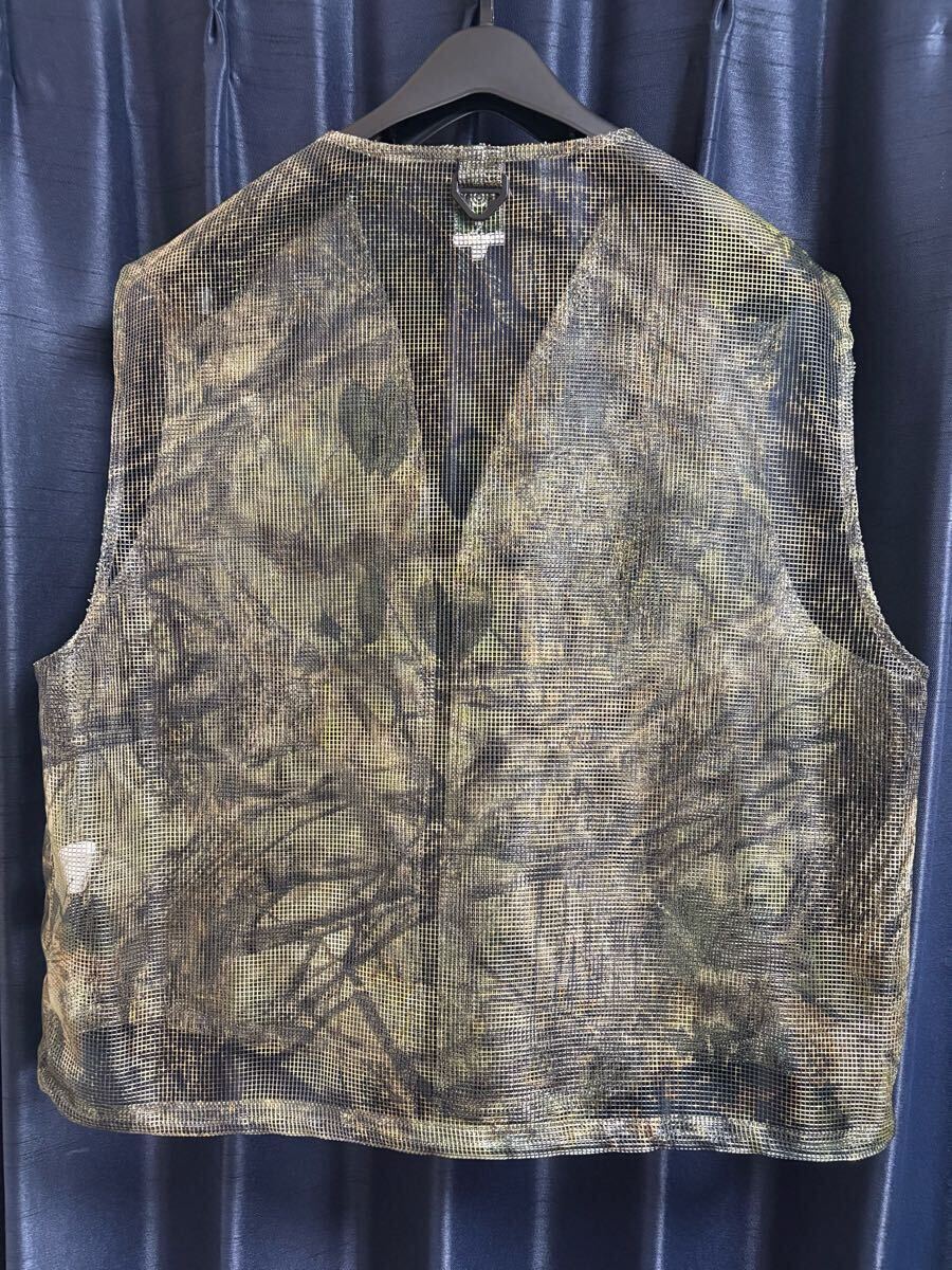 オリジナルのプリントが施された、個性的なメッシュ素材で制作したフィッシングベスト。収納力抜群の多彩なポケットやロッドホルダー、ショート丈のデザインなど、本格的な仕様のフィッシングベストです。メッシュ素材は通気性抜群で水濡れにも強く、アウトドアでは抜群の存在感を発揮します。メッシュの透け感を活かした、ユニークなレイヤードも魅力的なアイテムです。