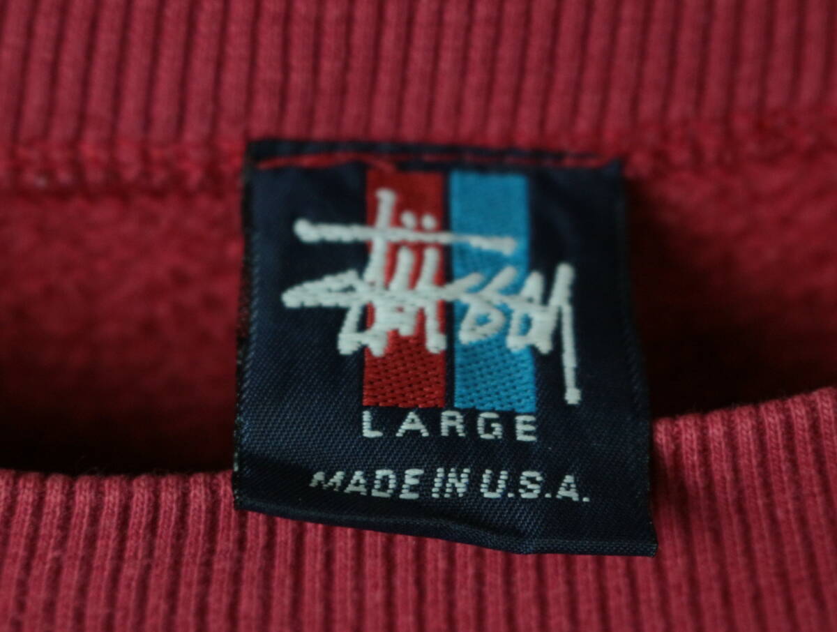 A560/Stussy/ステューシー/アメリカ製/USA製/90S/赤青タグ/スウェットシャツ/トレーナー/メンズ/Lサイズ/レッド/クルーネック