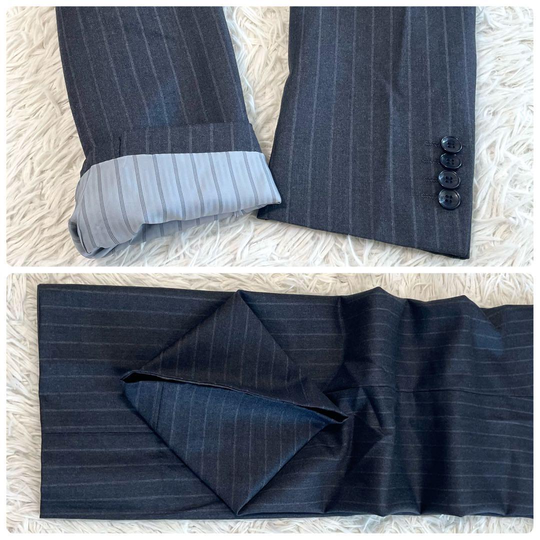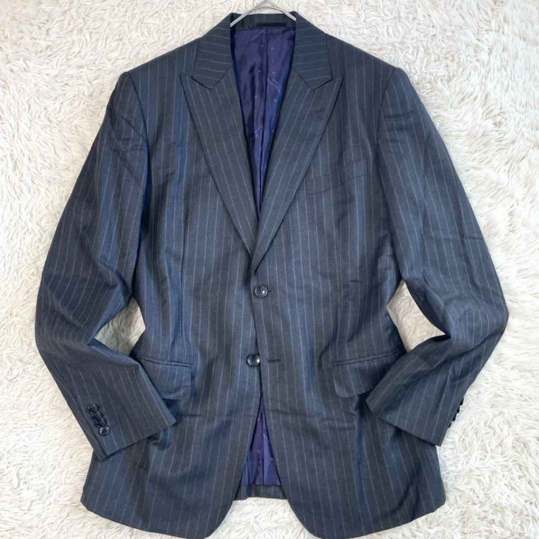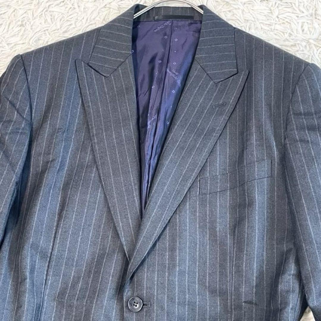 Product name: 極美品/XL●エルメネジルドゼニア スーツ セットアップ ストライプ 裏地紫 総柄 グレー テーラードジャケット ビジネス Ermenegildo Zegna
