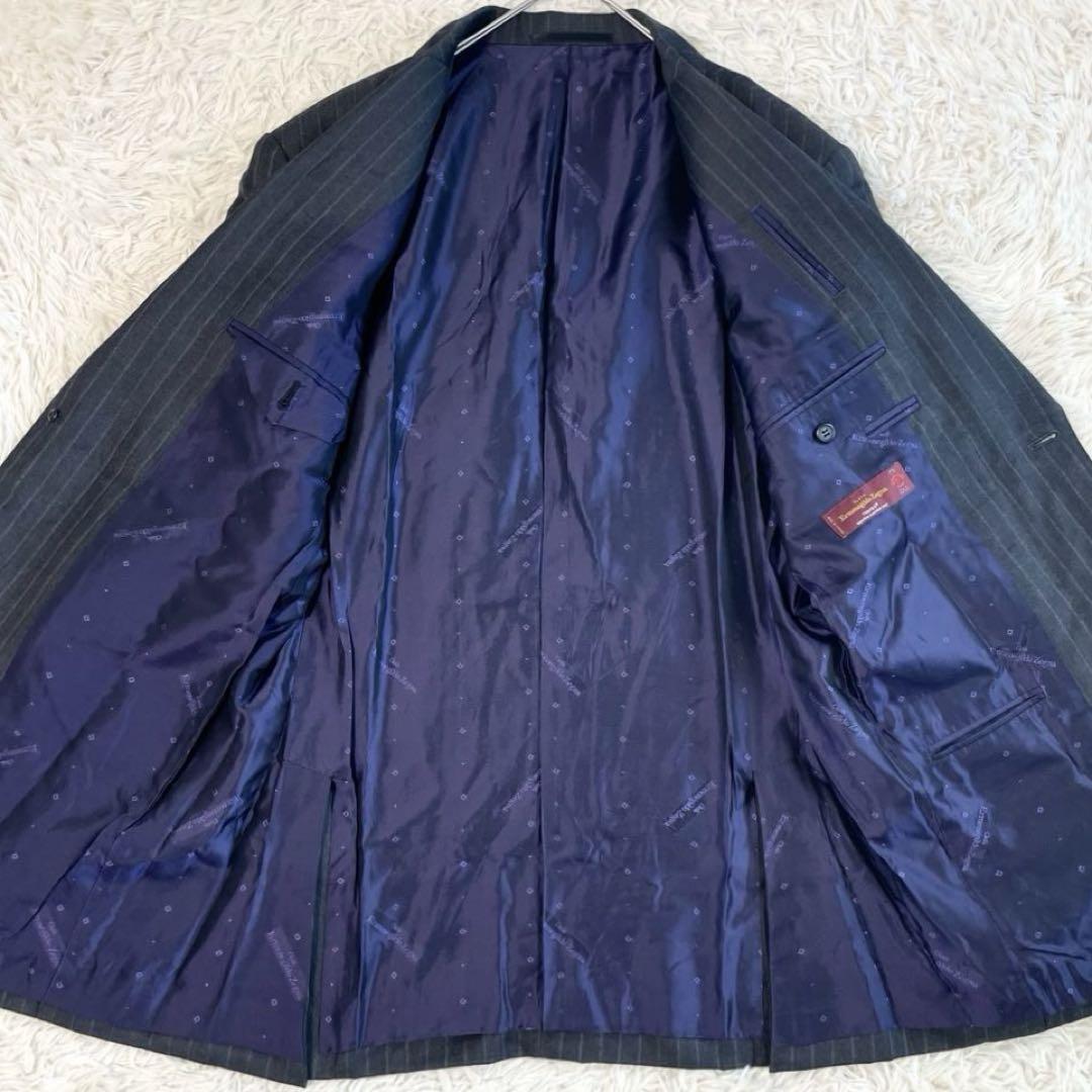 極美品/XL●エルメネジルドゼニア スーツ セットアップ ストライプ 裏地紫 総柄 グレー テーラードジャケット ビジネス Ermenegildo Zegna