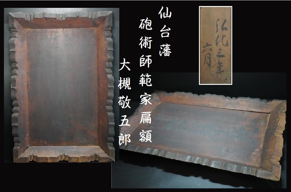 仙台藩砲術師範家 扁額(表)「弘化三年六月十三日 大槻敬五郎 拾弐歳」 (裏)「弘化三年六月」です。