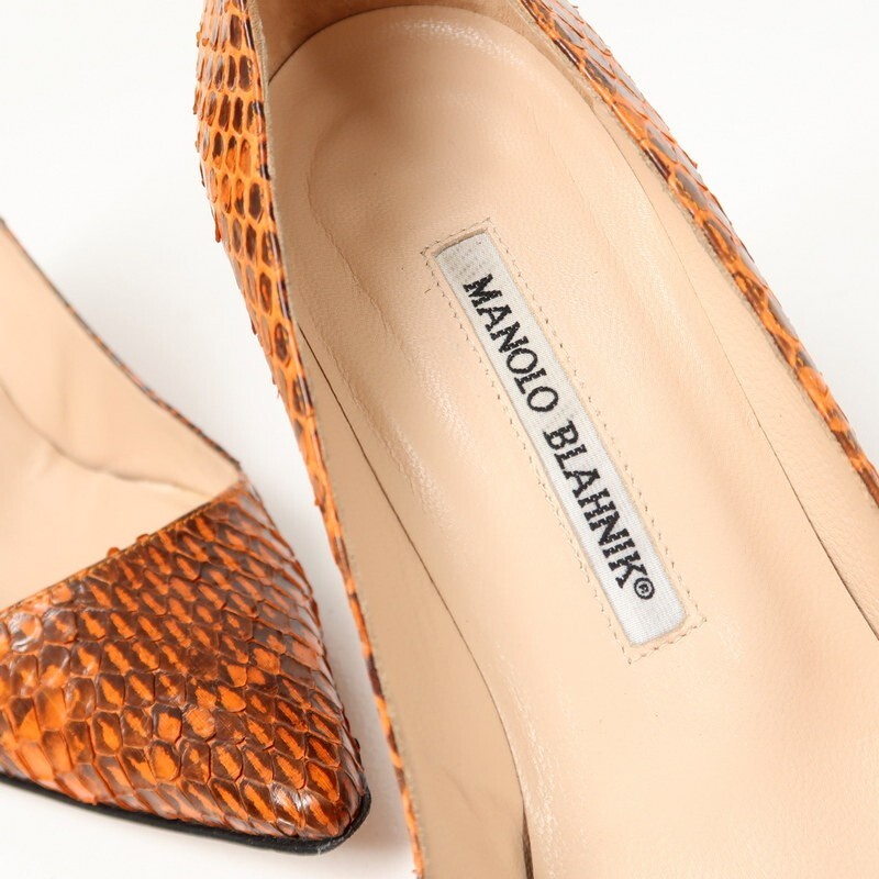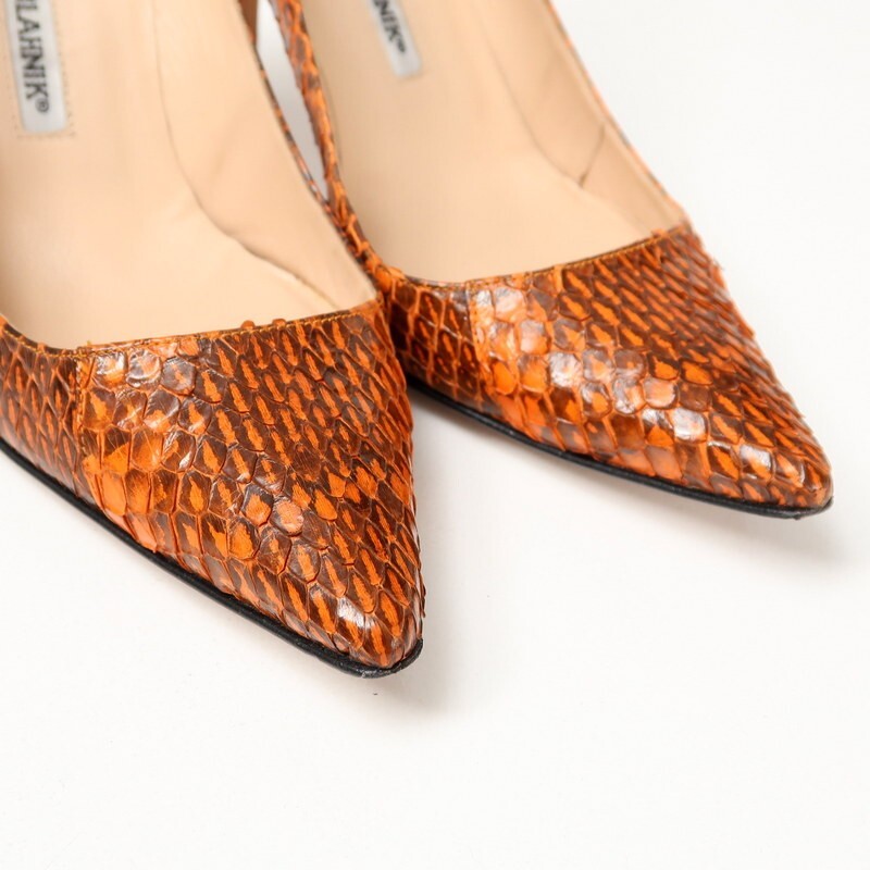 Product name: MH9042*イタリア製 MANOLO BLAHNIK マノロブラニク 36(23cm相当) パイソンレザー ポインテッドトゥパンプス 靴 オレンジ系
