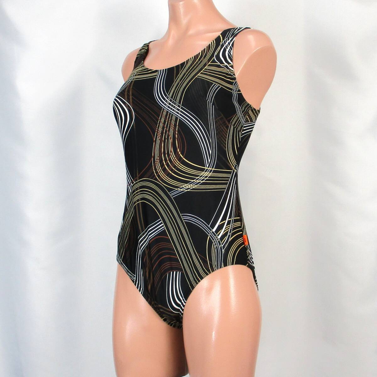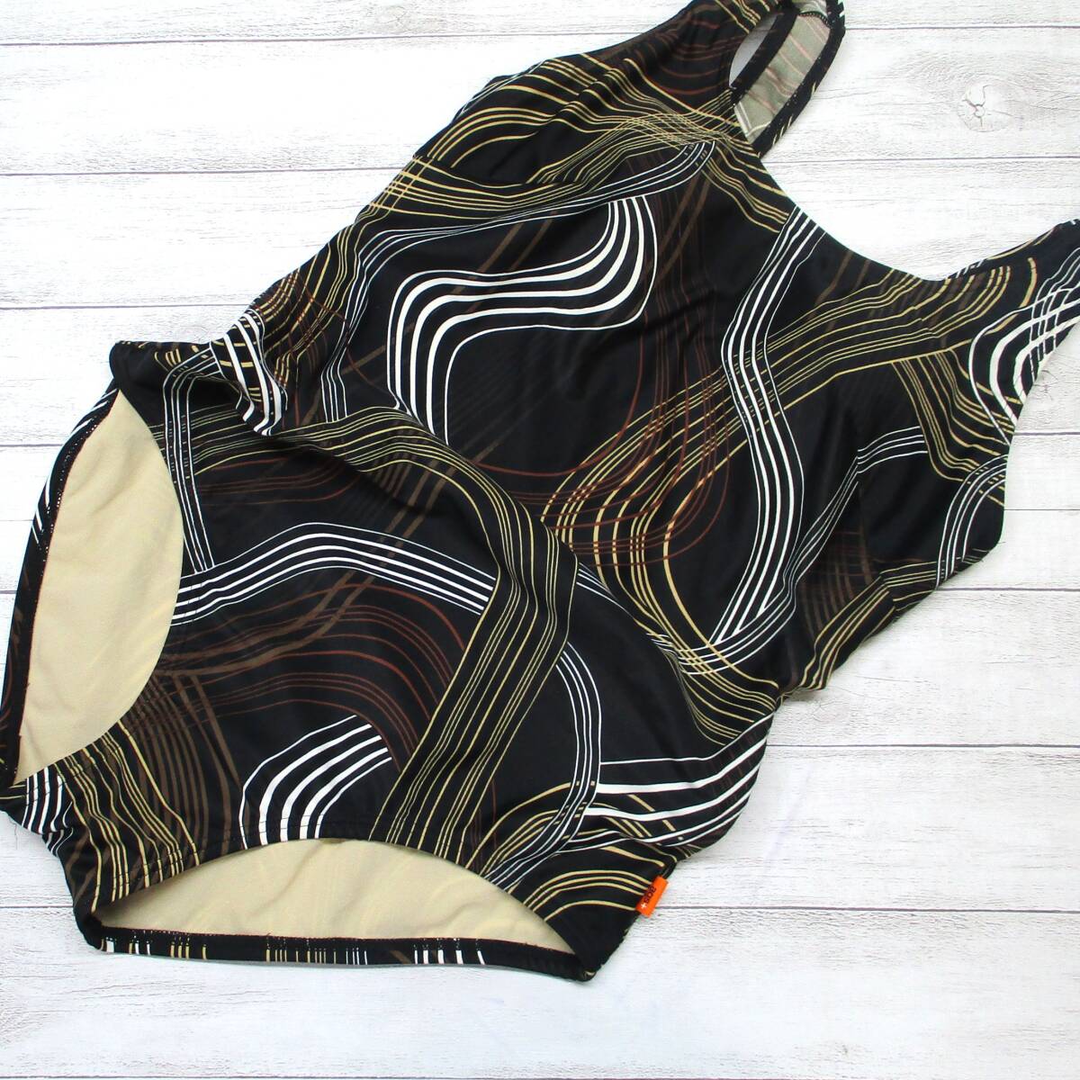 Product name: E7968★aqs+ 水着 ワンピース レディース 17LL 大きいサイズ ツルスベ ブラック 黒 柄模様 水泳 スイム プール ビーチ 海