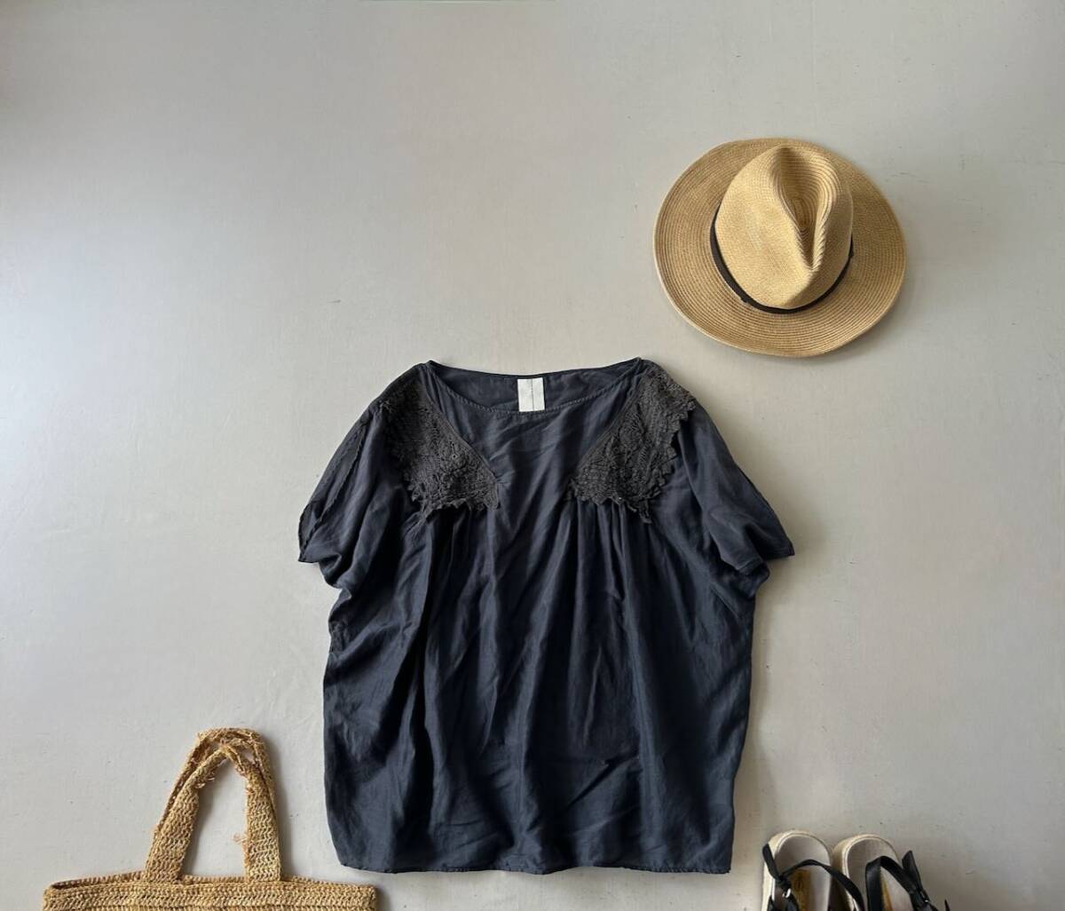 ニトカ nitcaの、これからの季節に活躍してくれるシルク混素材の可愛いプルオーバートップスです。