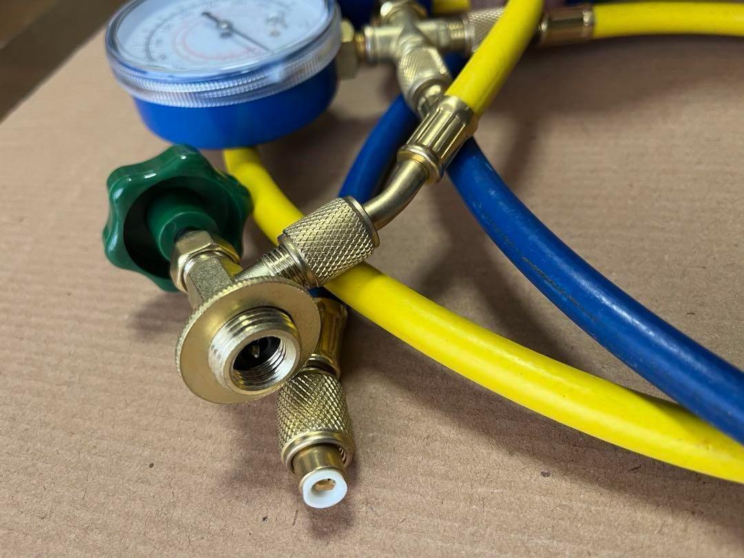 ★R12用のチャージホース2本、低圧メーター、サービス缶バルブのチャージセットです