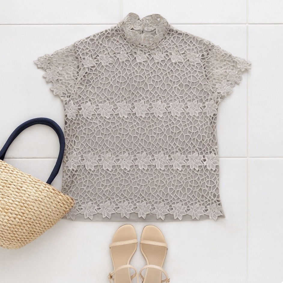 繊細な総レースと立体的なフラワーモチーフが印象的なトップスです。