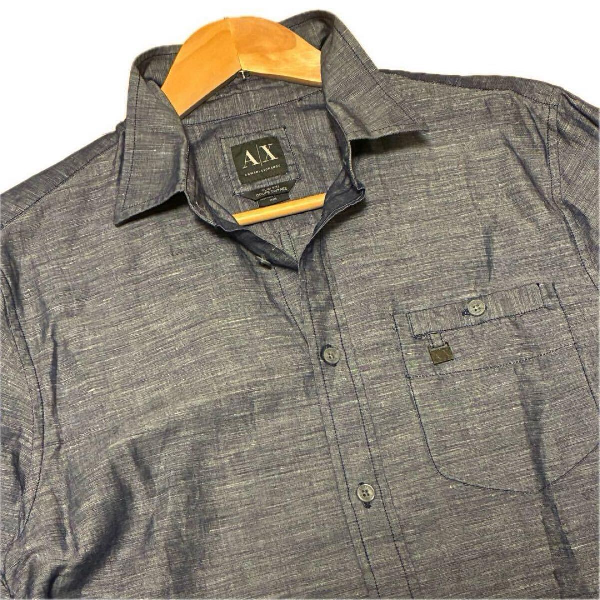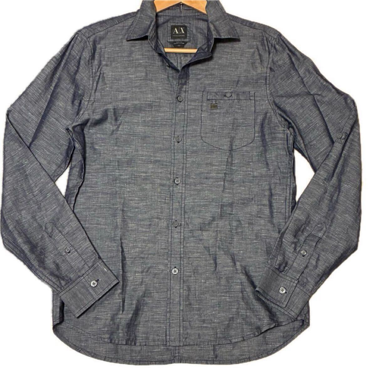 Product name: 美品/L相当●アルマーニ エクスチェンジ リネンコットン 麻 長袖シャツ ドレス 光沢 AX金具 ARMANI