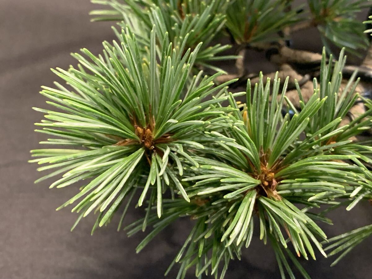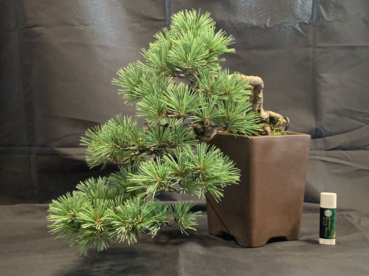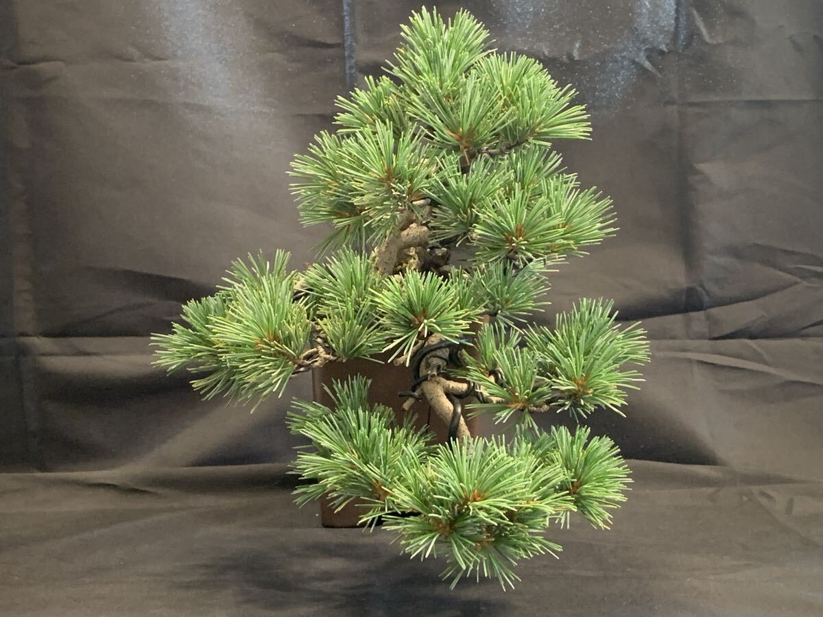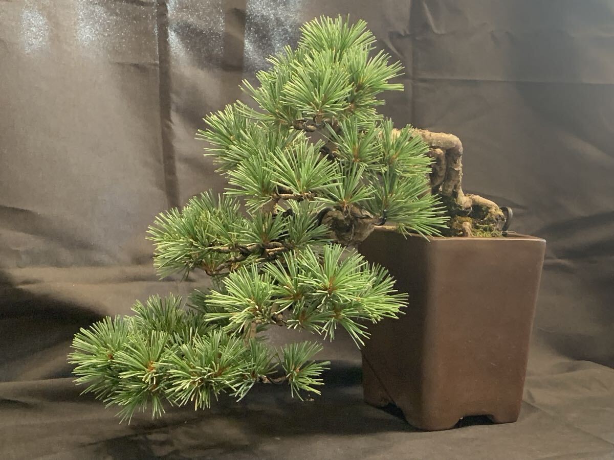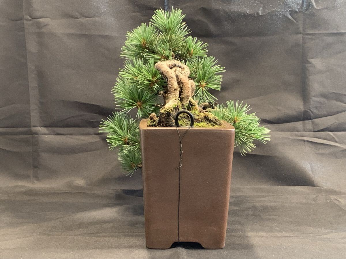 吾妻五葉松の希少種である松国宝の小品サイズ懸崖盆栽です。