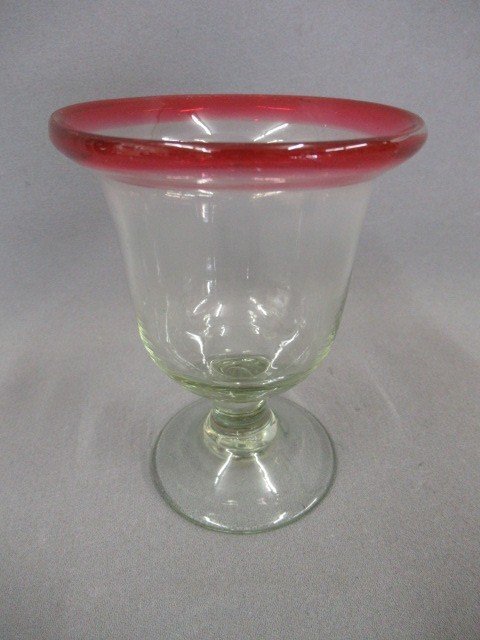 【古い赤色縁氷コップ アイスクリーム・カップ】時代物 手造りガラス製品 赤色口縁 レトロ・アンティーク