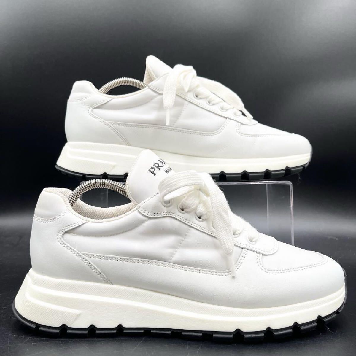 Product name: 1円 【美品】 PRADA プラダ 【圧倒的高級感】 ファブリック メンズ ロゴ ローカット スニーカー シューズ 靴 ホワイト 白 25cm相当
