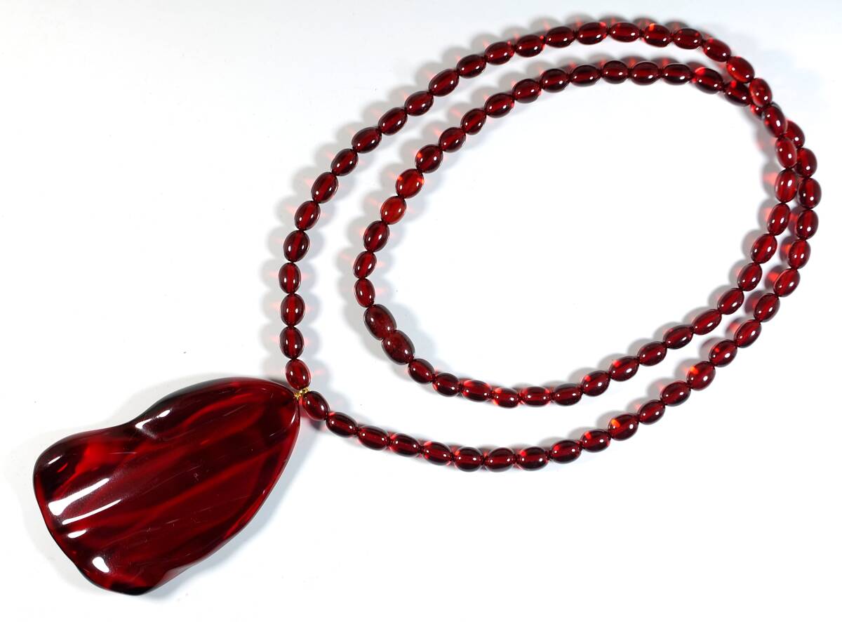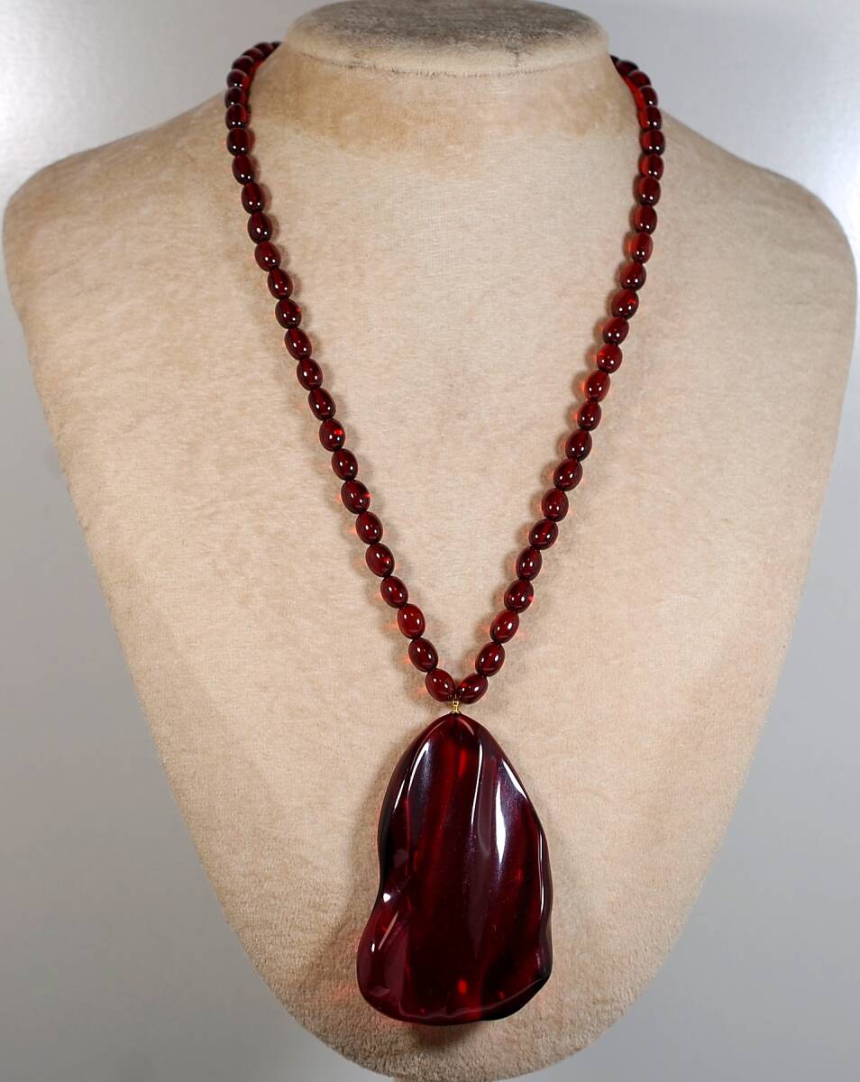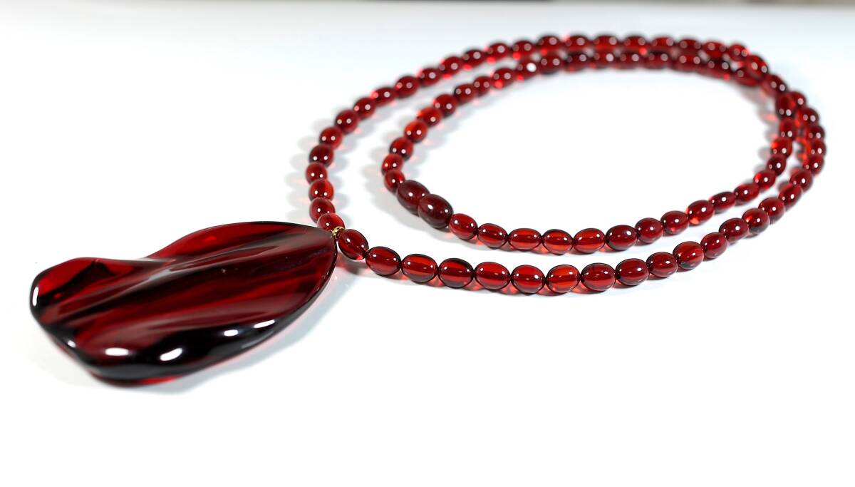 ¥100~リトアニア産特大TOP付爽やかなレッドカラー綺麗色艶照り良い!天然本琥珀レッド65.0cm24.4㌘NC