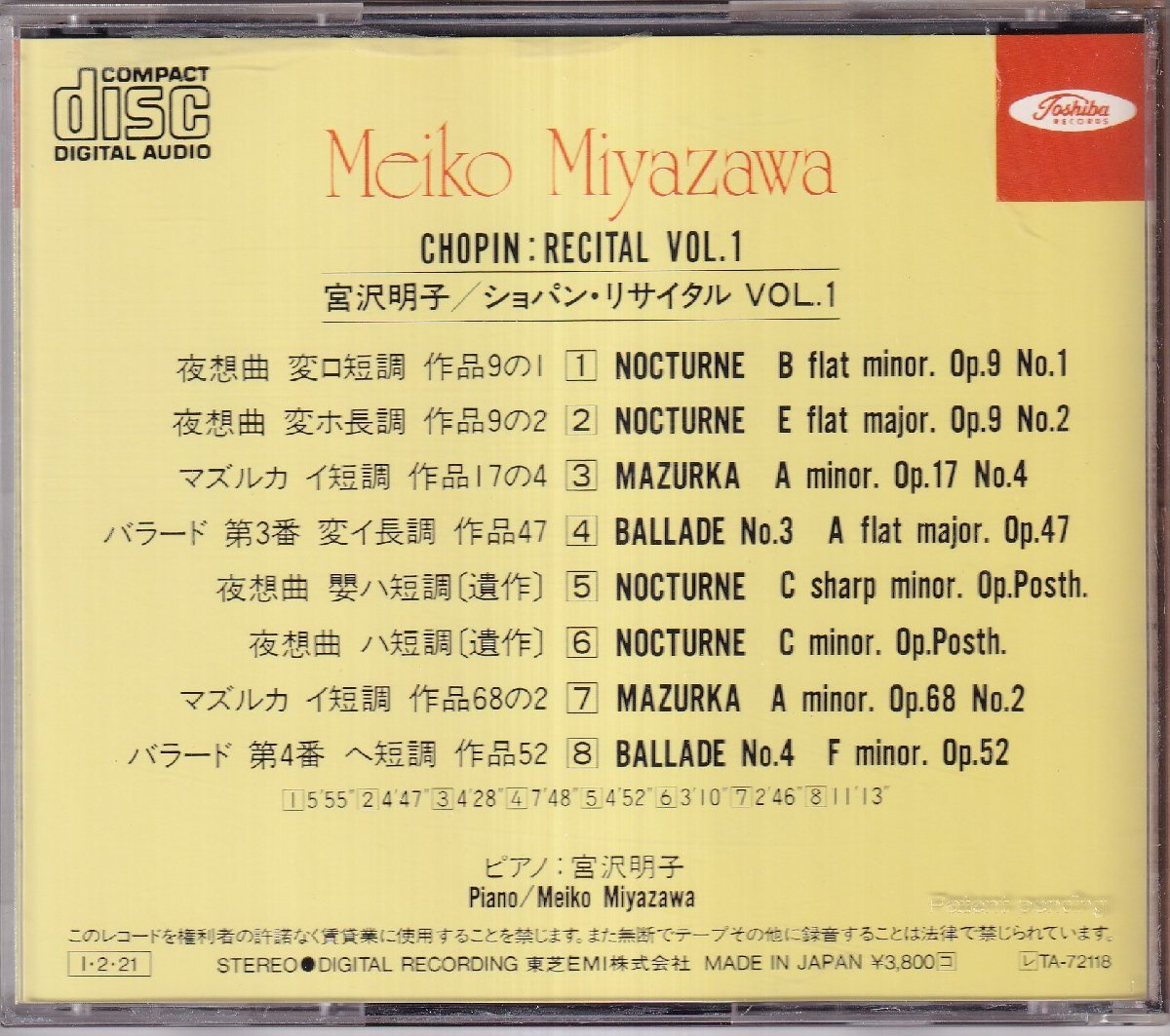 Product name: CA38-1104 「ショパン・リサイタル VOL1」 宮沢明子(P)